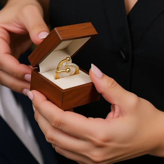 Tvistad ring dam – öppen ring i rostfritt stål med zirkon