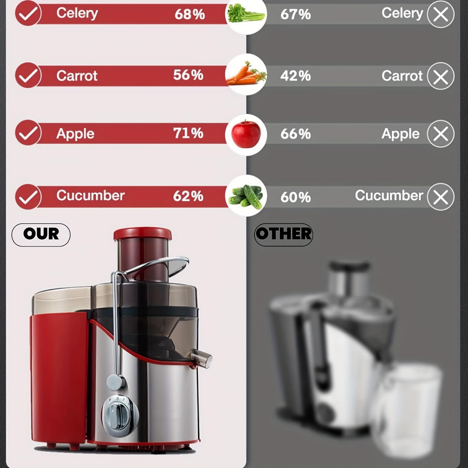Tänk dig doften av nygjord apelsinjuice på morgonen eller ett glas friskt äppel- och morotsjuice efter träningen. Med vår kraftfulla frukt- och grönsakspress blir det enklare än någonsin att skapa hälsosamma drycker och puréer hemma – snabbt, smidigt och helt utan tillsatser.