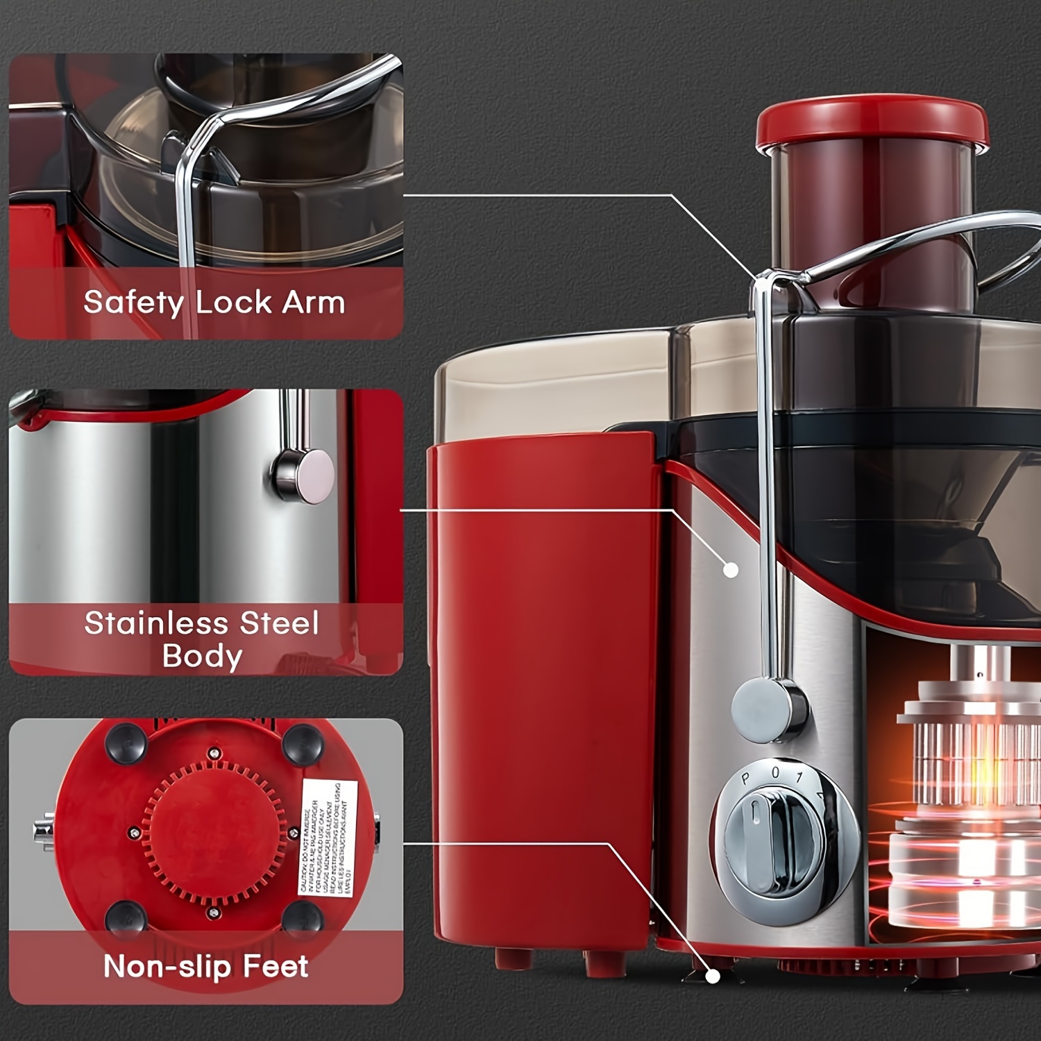 Den stabila konstruktionen och säkra handhavandet gör att du kan pressa frukt och grönt utan spill och krångel. Rostfritt stål är hygieniskt och lätt att rengöra, vilket ger både säkerhet och bekvämlighet vid varje användning.