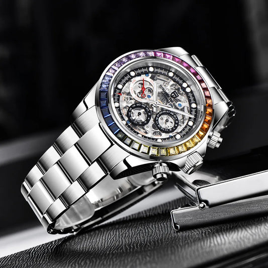 Lyxig herrklocka – mekanisk automat med safirglas