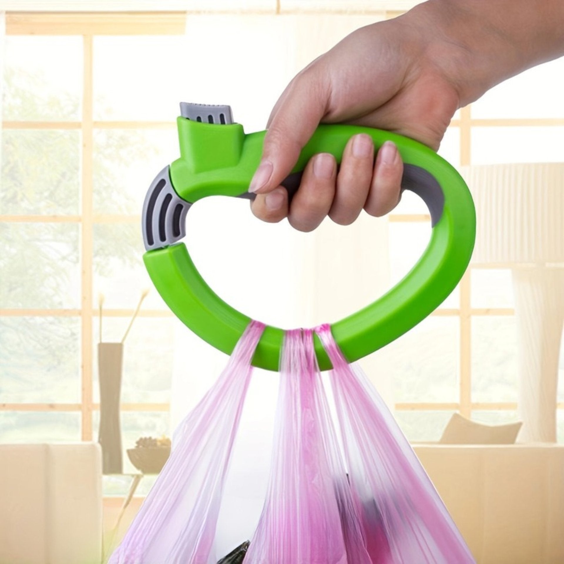 Useiden raskaiden muovi- tai kangaskassien kantaminen voi nopeasti muuttua epämukavaksi ja viiltää käsiäsi. Itselukittuvan kassitelineemme ansiosta saat fiksun otteen, jonka avulla voit kantaa useampia kerralla – ilman kipua tai kramppeja.
