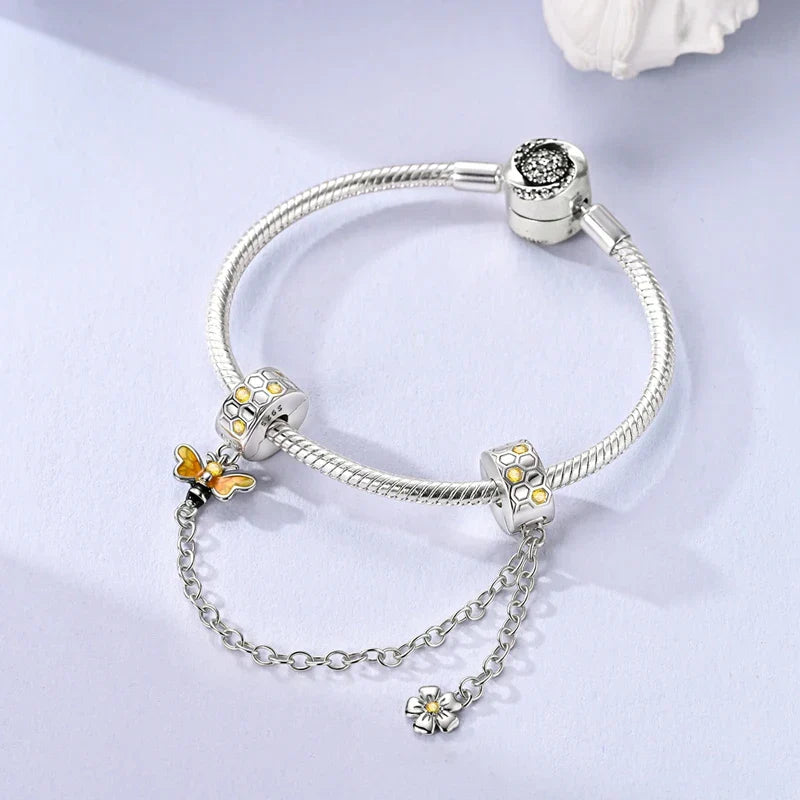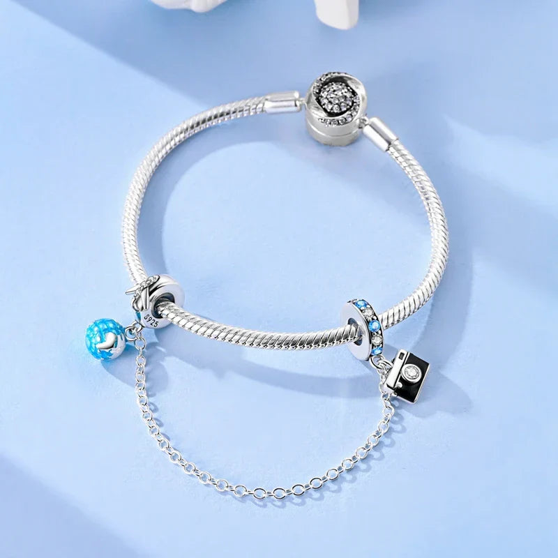 Berlocker Saga (säkerhetskedja & berlocker – flygplan, blomma & kamera)