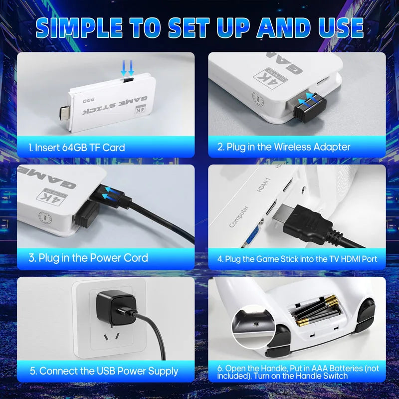 Muistatko ne tunnit, jotka vietit pelaten klassikkopelejä, jotka saivat sinut nauramaan, tappelemaan ja istumaan varpaillasi? GameStick – kädessä pidettävä 4K-pelikonsoli vie sinut takaisin noihin aikoihin, mutta nyt yli 30 000 pelin kera, joita voit pelata isolla ruudulla – ilman vaivaa, ilman kalliita konsoleita ja ilman internetyhteyttä.