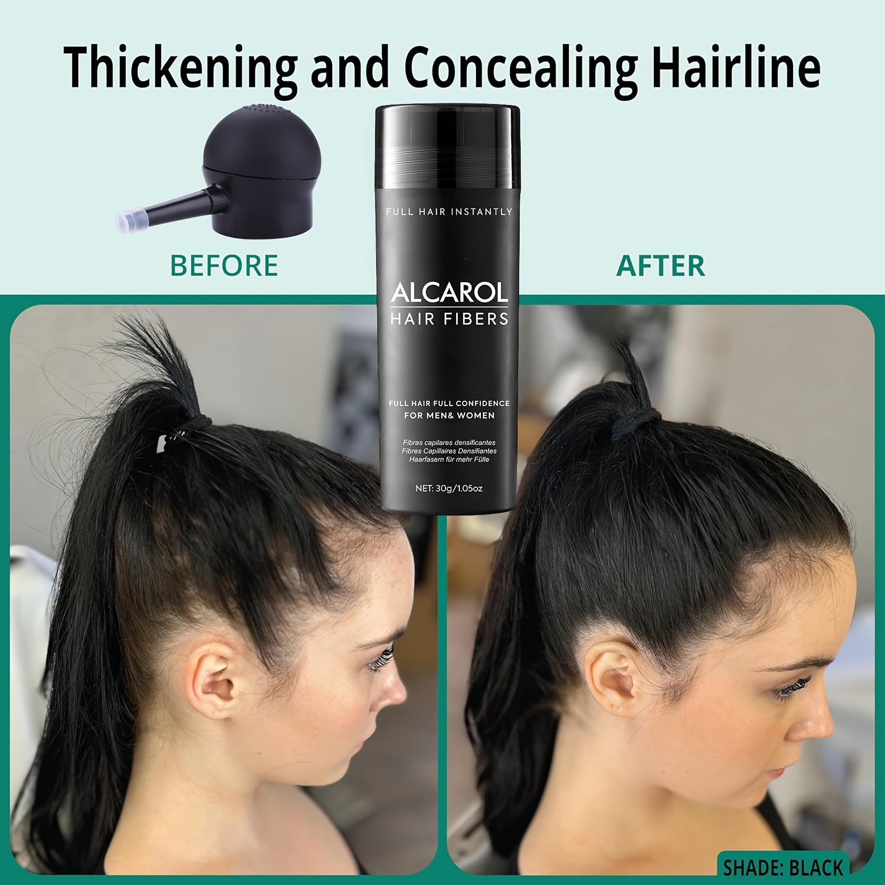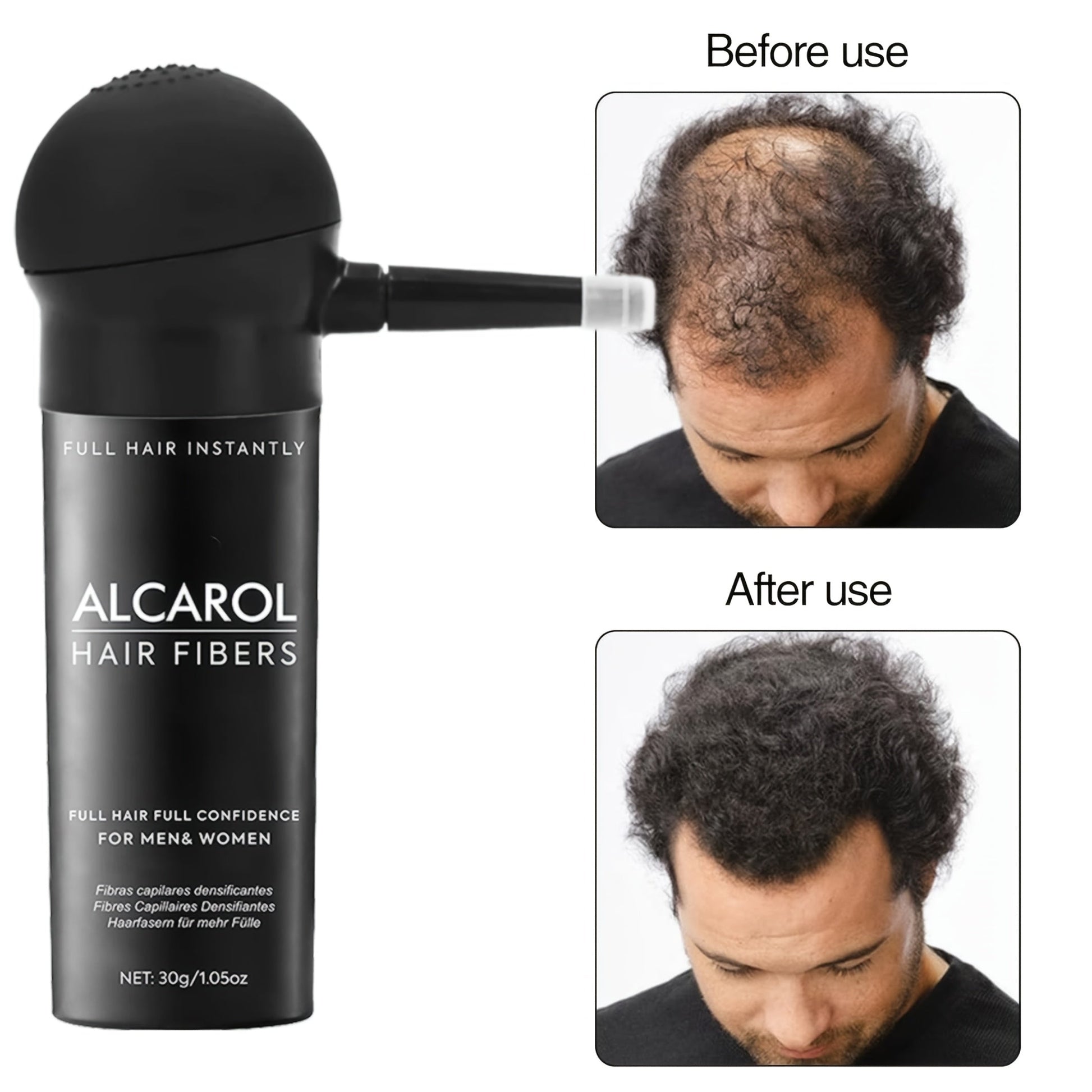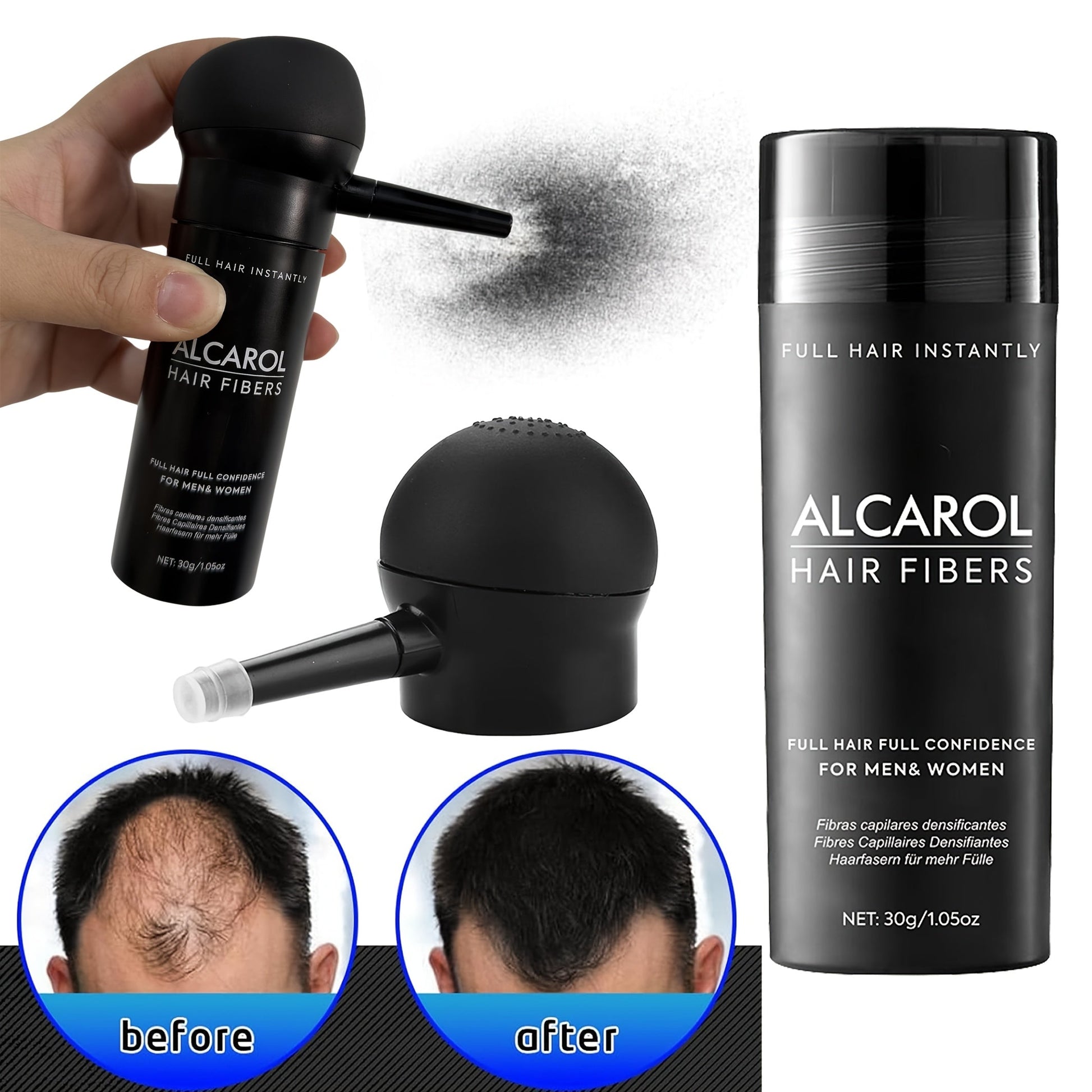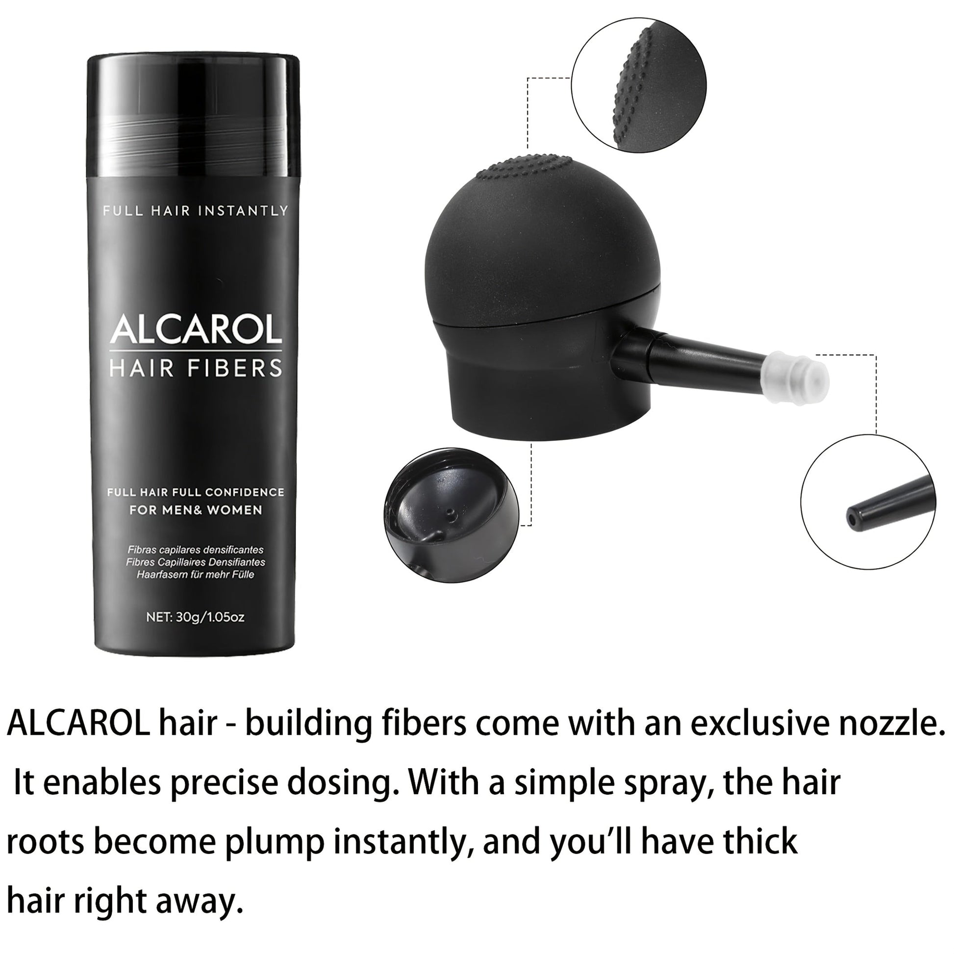 Mikrohienot hiuskuidut – Kiinnittyvät hiuksiin ja päänahkaan luodakseen illuusion paksummista hiuksista.