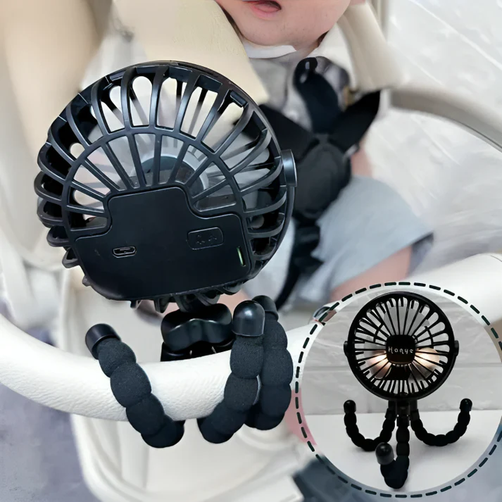 Lapsesi turvallisuus mielessä suunnitellussa BabyBreezessä on lapsiturvalliset muoviterät, jotka ovat täysin turvallisia pienille käsille. Hiljaisen käyntiäänen ansiosta lapsesi voi nukkua rauhassa ja nauttia viileästä ilmasta. Kuvittele kesäinen kävelyretki, jossa lapsesi on onnellinen ja mukava ilman ylikuumenemista.
