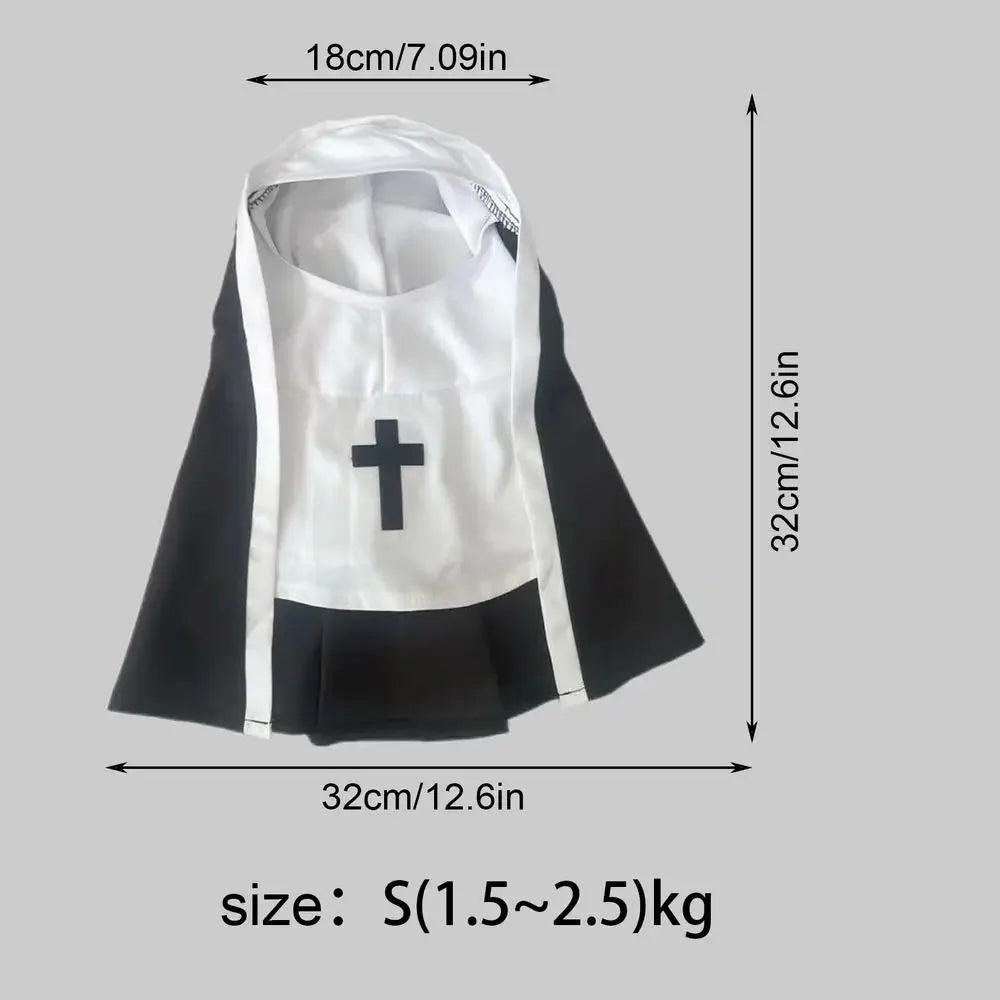 2.Festive Fun: Lift your Halloween game with our Pet Nun Costume suitable for dogs and cats. The shades of black and white scream festivity. The package includes 1 x Nun Dog Role Play Costume