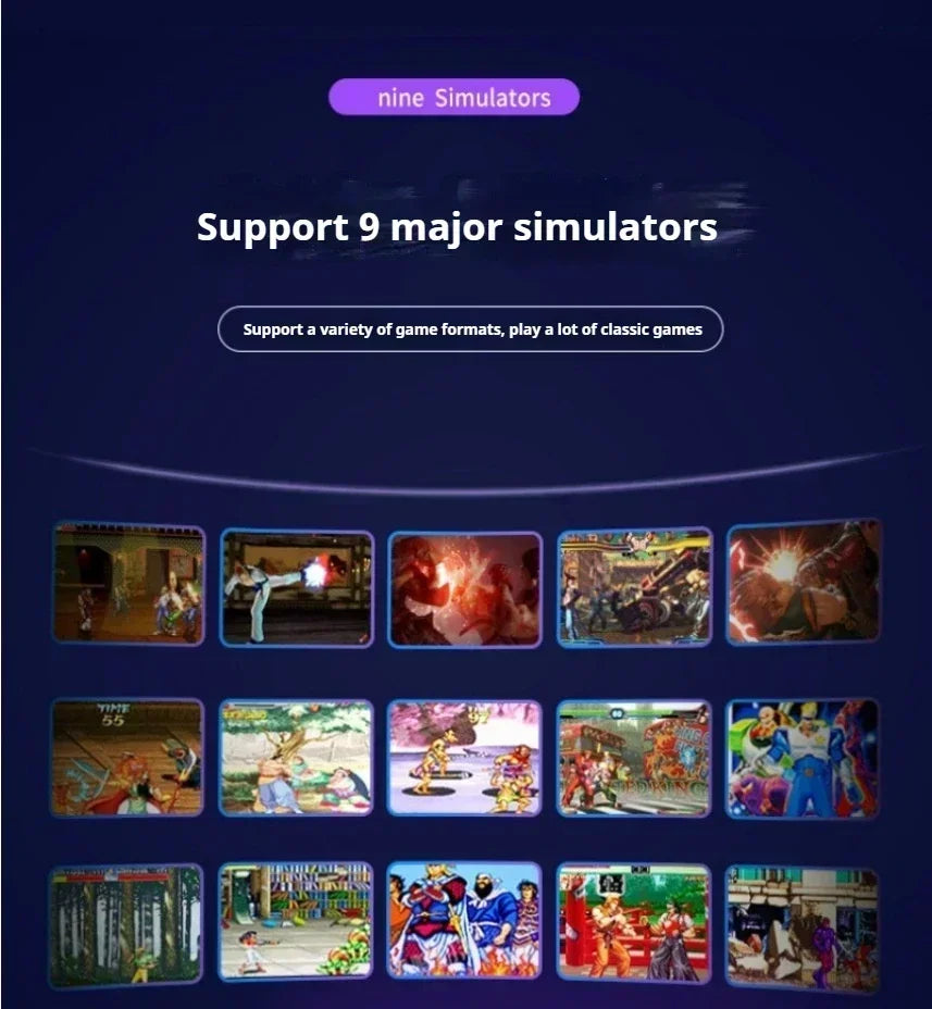 Sisäänrakennettuja 14 emulaattoria ja osa kokeilupeleistä on sisäänrakennettu. Pelaajat voivat seurata tarjoamiamme video-opetusohjelmia ja pelata ilmaisia ROM-tiedostoja konsolilla itse.