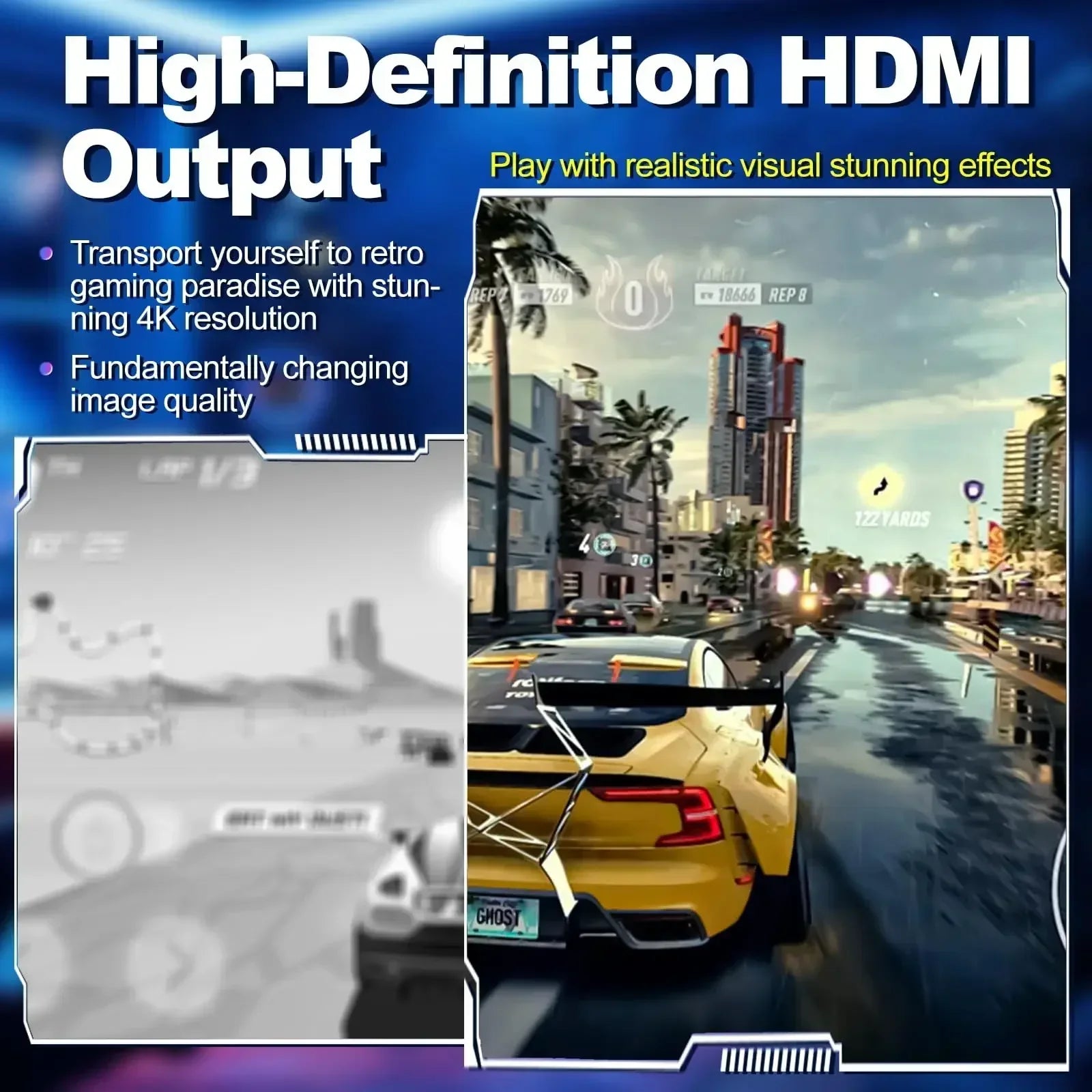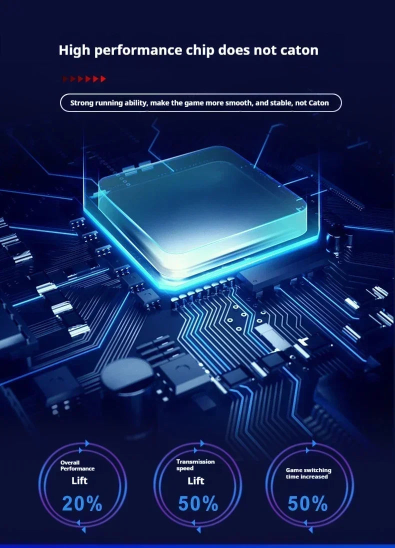 64 Gt:n TF-kortille rakennettu pelikonsoli sisältää yli 20 000 peliä ja 14 emulaattoria, ja se tukee myös itse ladattavia pelejä.