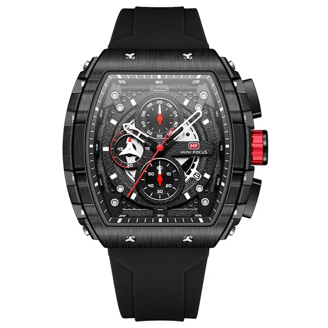 Känner du igen känslan av att en sportklocka ofta ser för plastig ut – eller att en elegant klocka inte tål ett aktivt liv? Klocka Felix är svaret på båda problemen. Med sin kraftfulla tonneau-design, robusta material och sportiga orange silikonarmband är det en klocka som är lika självklar på gymmet som på jobbet.