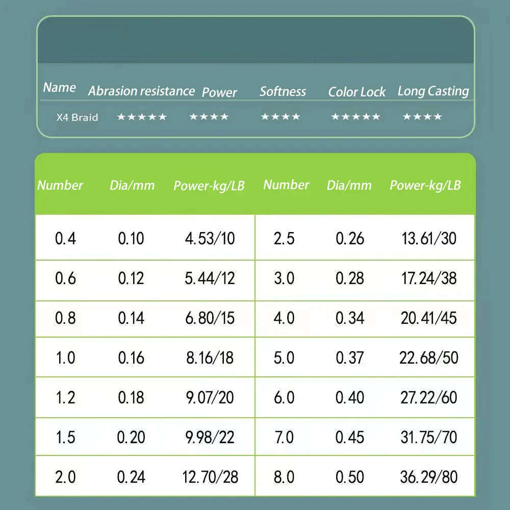 4-trådig PE-flätning för maximal dragstyrka (12–100 lb)