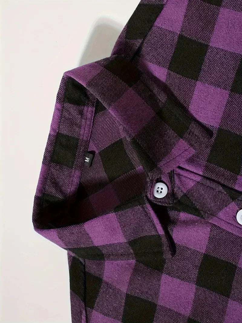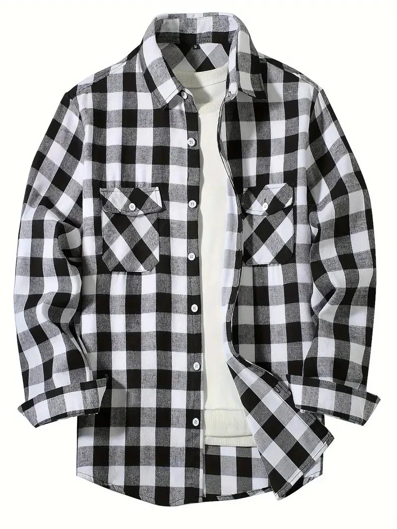 Rutig herrskjorta – långärmad borstad flanellskjorta