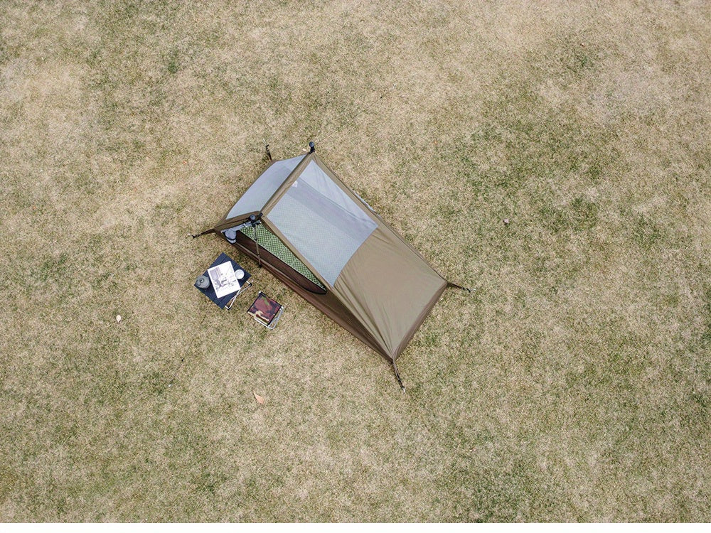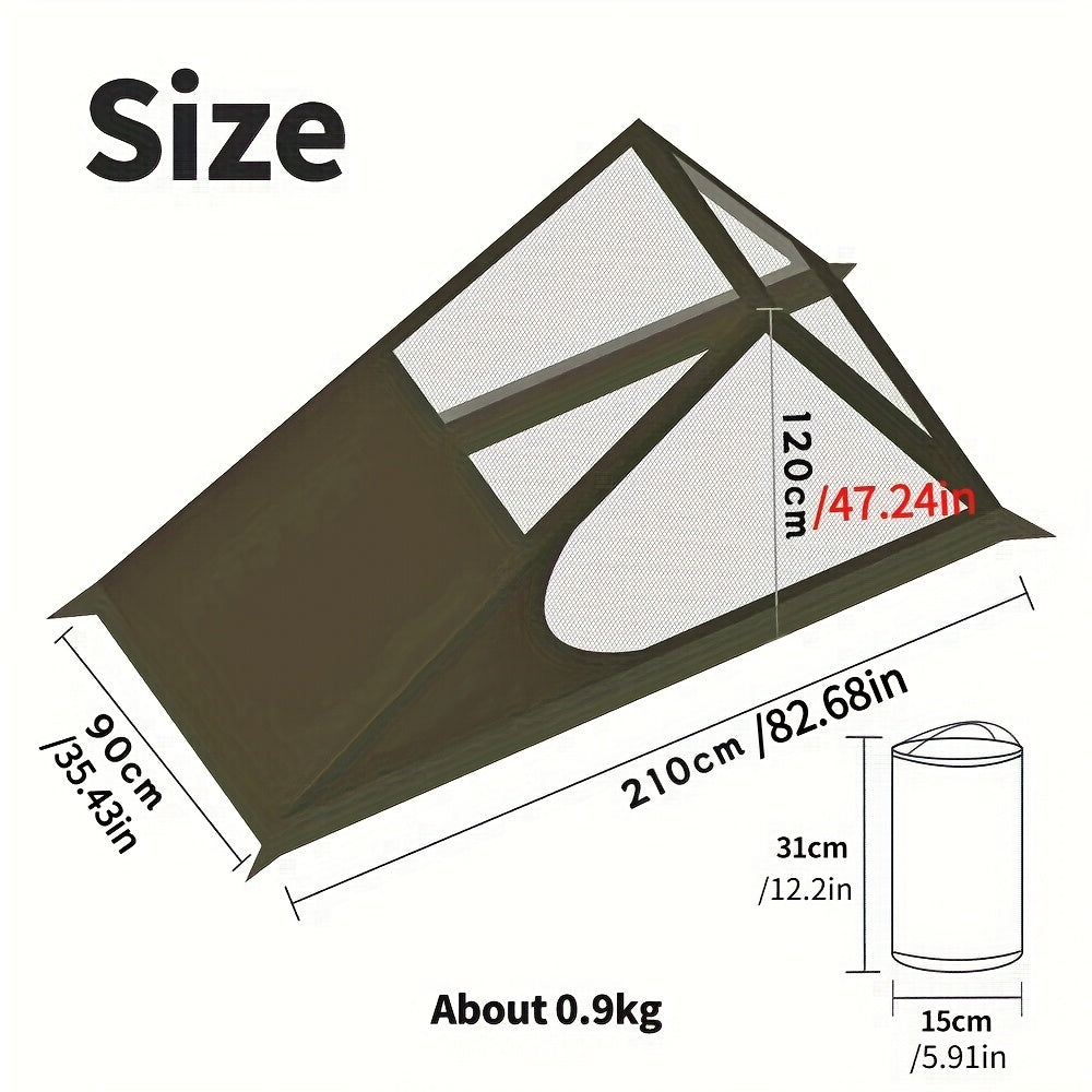 Res tältet på bara några minuter med hjälp av vandringsstavar eller genom att hänga upp det mellan två träd. Passar på olika underlag och är enkelt att resa själv – även i skymning eller dåligt väder.
