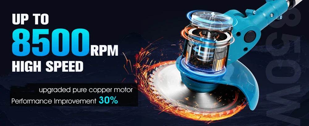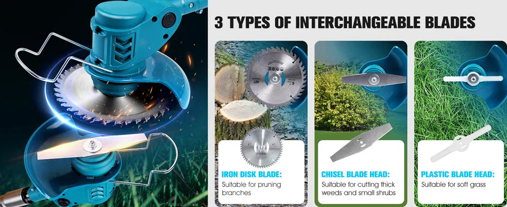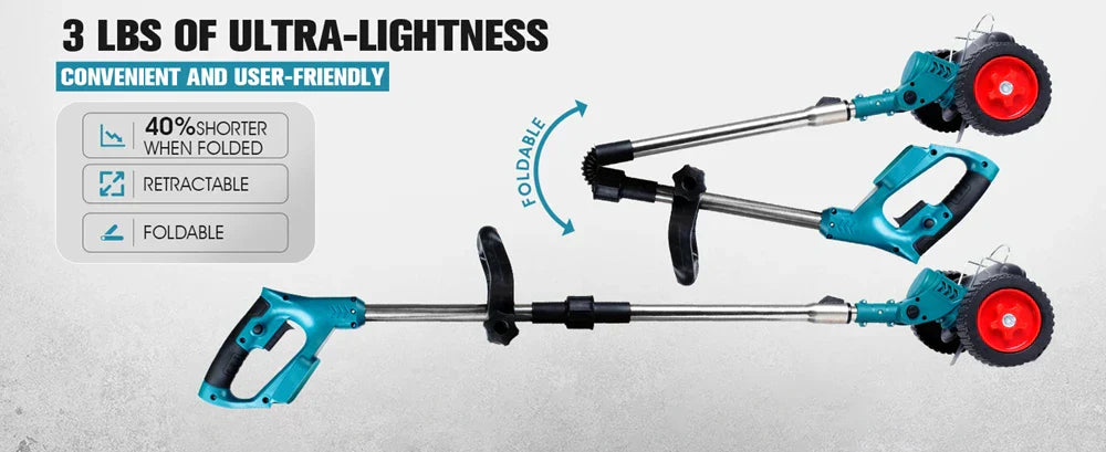 Trådlös & Hopfällbar Grästrimmer 36V – Justerbar Höjd, Hjul & 3 Bladtyper