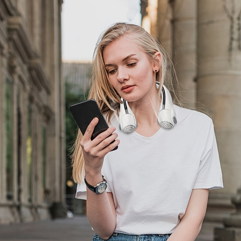 Slipp svett och obehag i sommarvärmen med vår portabla bladlösa nackfläkt. Perfekt för resor, kontoret, träning, trädgårdsarbete eller bara när du vill koppla av och njuta av en sval bris.