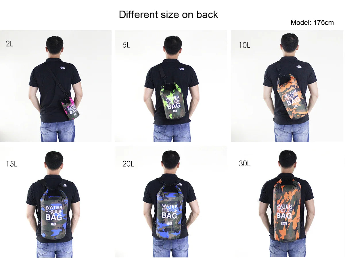 Vattentät drybag 2–30 L – kamouflage väska för paddling & friluftsliv