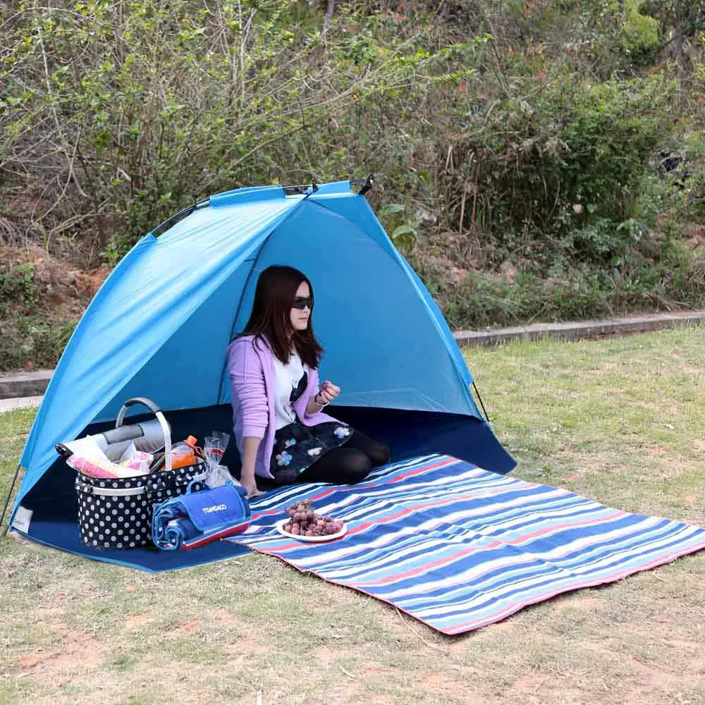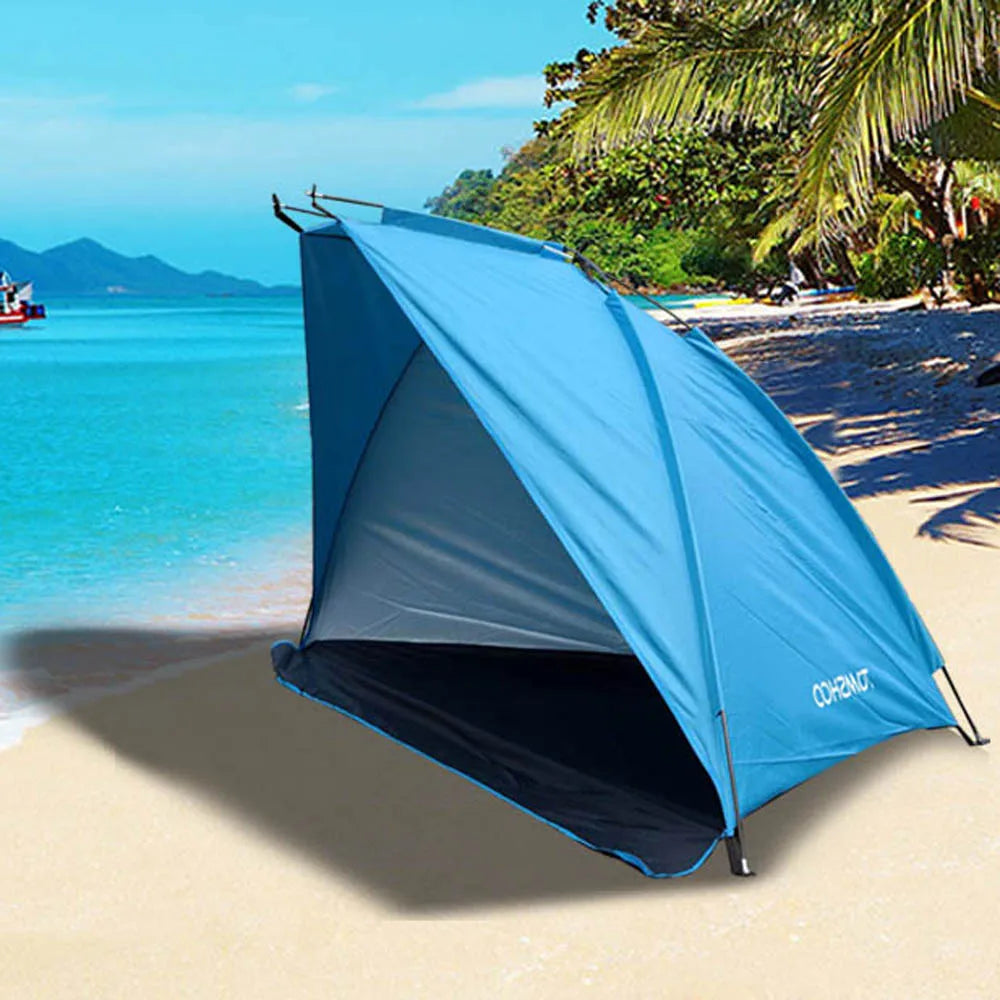 Föreställ dig en varm sommardag där du kan dra dig tillbaka till ett skuggigt och svalt tält, samtidigt som du fortfarande hör vågorna och ser utsikten. Tältet rymmer två personer bekvämt och gör varje utflykt lite lyxigare.