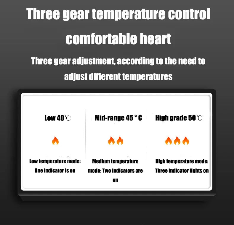 Tre värmelägen (40–65°C) för att anpassa värmen efter väder och behov.