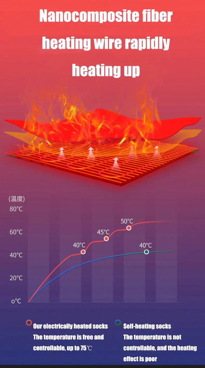 Vinterkylan behöver inte längre stoppa dig. Med Uppladdningsbara Värmestrumpor håller du fötterna varma och bekväma oavsett om du är ute och fiskar, åker skidor, vandrar eller bara tar en promenad i snön. Perfekt för dig som har kroniskt kalla fötter eller vill ha extra komfort under kyliga dagar.