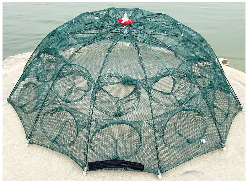 Oavsett om du siktar på kräftor, räkor, fisk eller krabbor så är en bra fälla avgörande. Vår hopfällbara fiskefälla med upp till 24 ingångar gör det enkelt att fånga mycket på en gång – bara kasta i, vänta och dra upp.