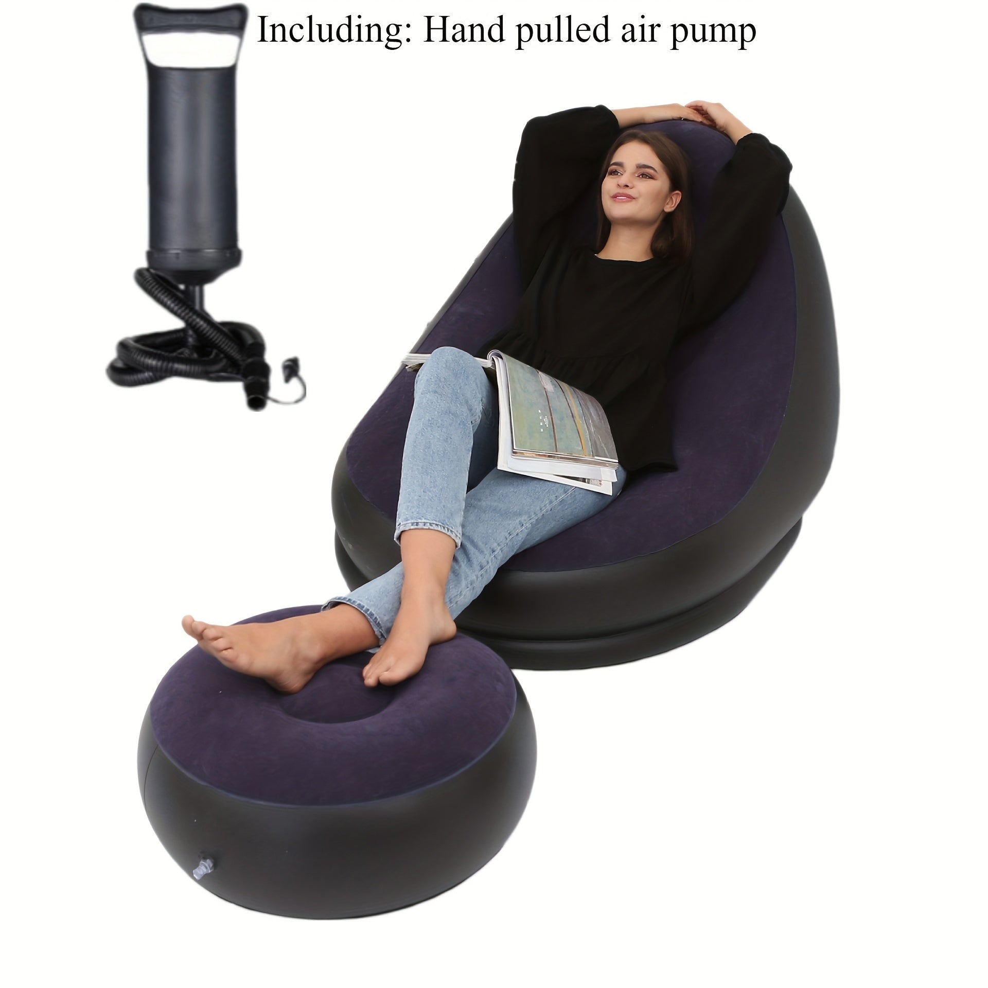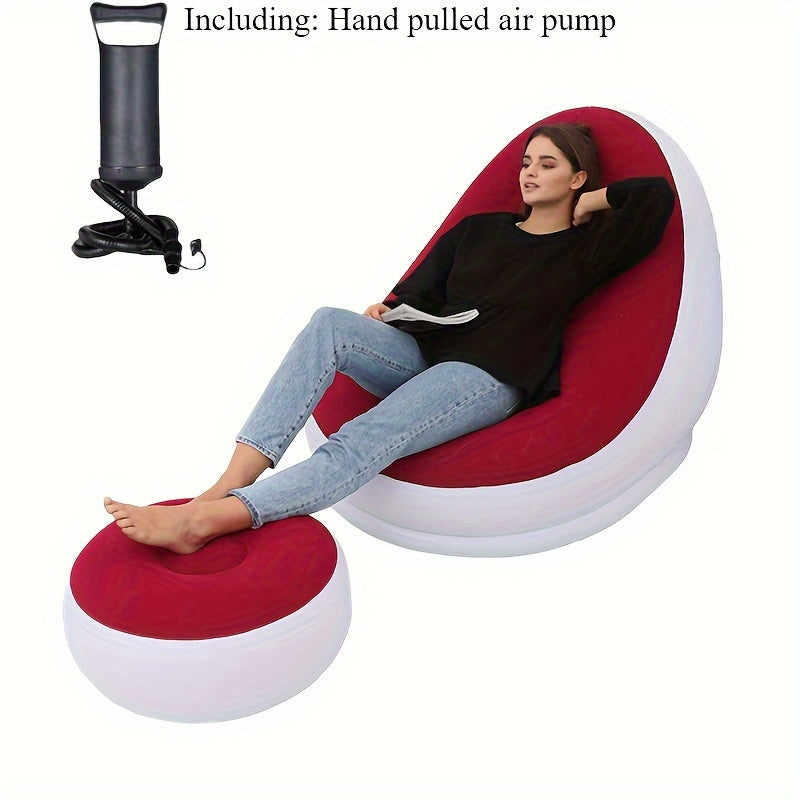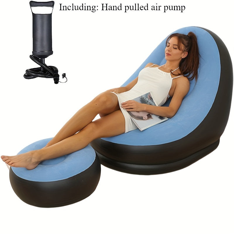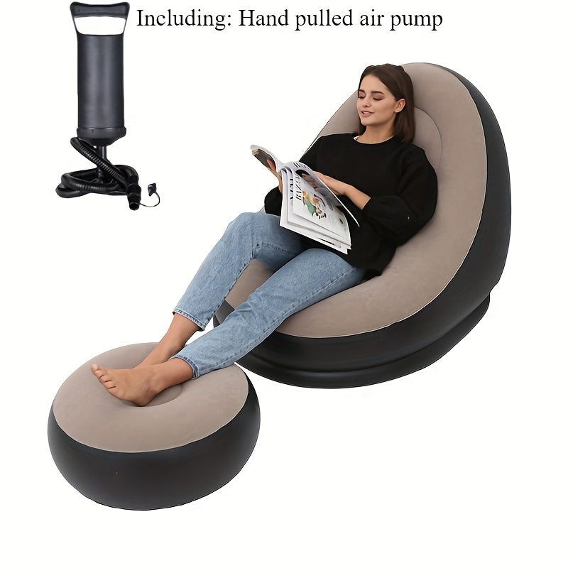3-delars set: Soffa + fotstöd + handpump (perfekt om du saknar uppblåsningsverktyg)