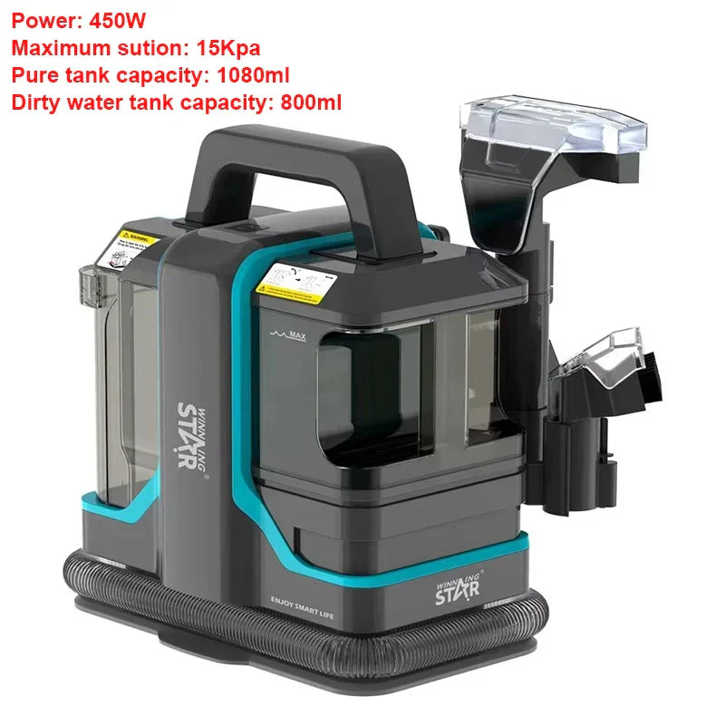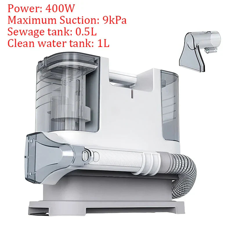 Rensy™ är tillverkad i slitstarkt ABS-material och utformad för att ge effektiv textilrengöring i hemmet, bilen och på möbler. Med en kompakt storlek på 36.2 × 30.4 × 18 cm och nätdriven drift levererar den 500W motoreffekt och 12 000 PA stark sugkraft som når djupt ner i tygfibrer för att avlägsna damm, hår, partiklar och ingrodda fläckar. Den manuella sprayfunktionen fuktar och löser upp smuts så att gamla och nya fläckar snabbt kan lyftas bort. Trots sin kraft arbetar apparaten med låg ljudnivå för en mer behaglig rengöringsupplevelse. Den fem meter långa elkabeln gör det enkelt att rengöra hela rummet eller bilen utan att byta uttag. Med en stor renvattentank på 1800 ml och en smutsvattentank på 800 ml kan du rengöra större ytor utan avbrott, samtidigt som vattnet hålls ordentligt separerat för bästa hygien och resultat.