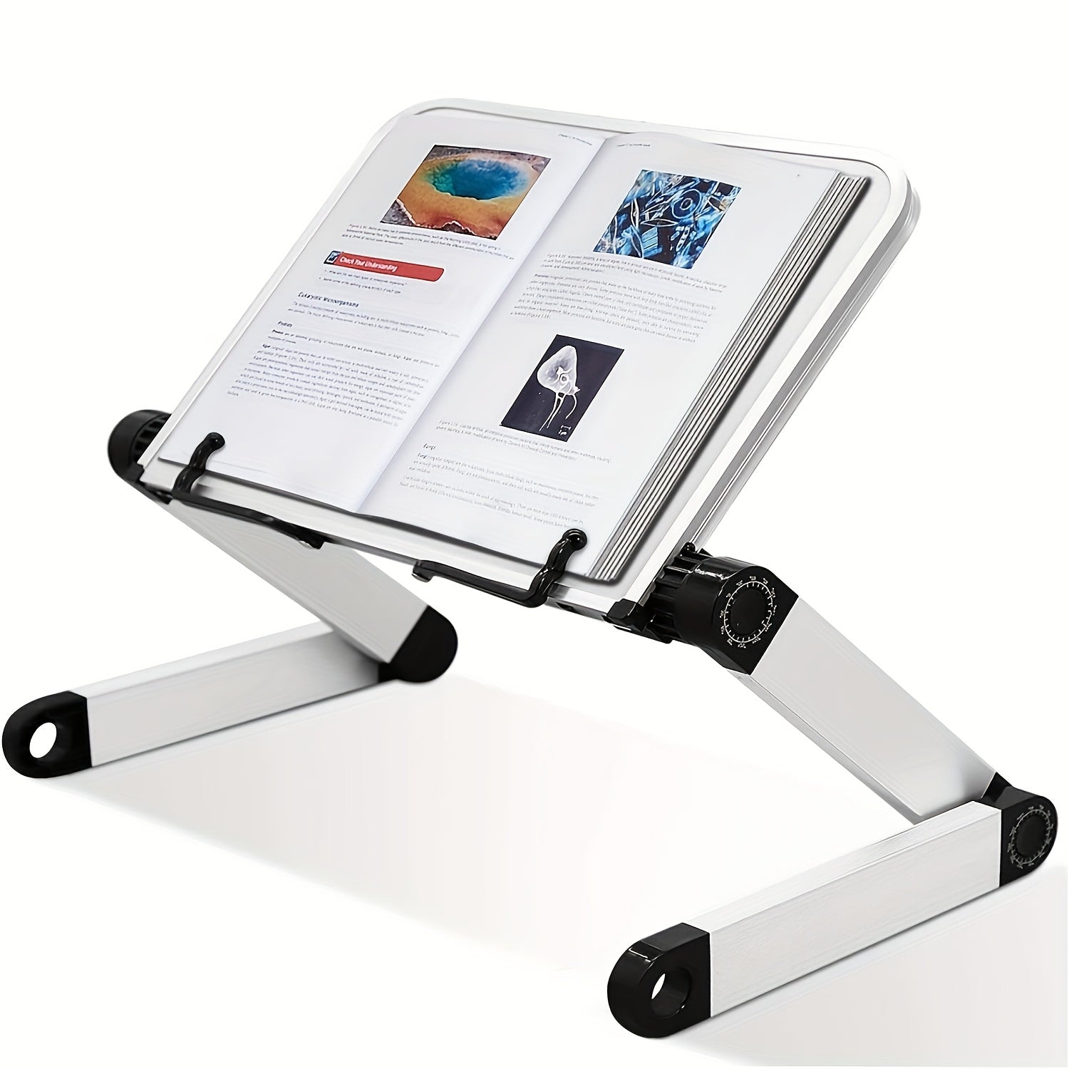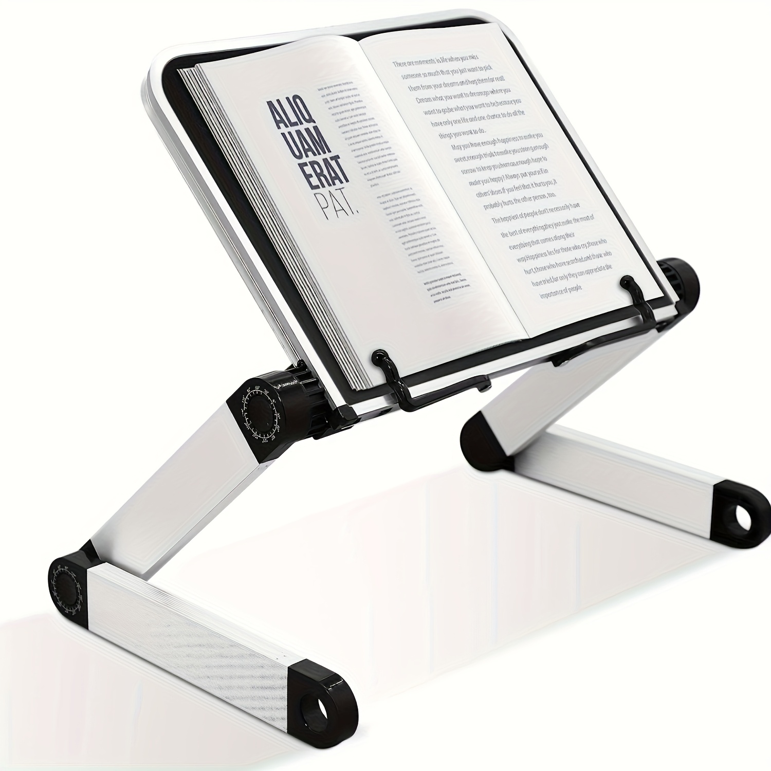 Klicka hem Justerbart Aluminium Bokställ med Klämmor nu och gör läsning och arbete både bekvämare och mer organiserat.