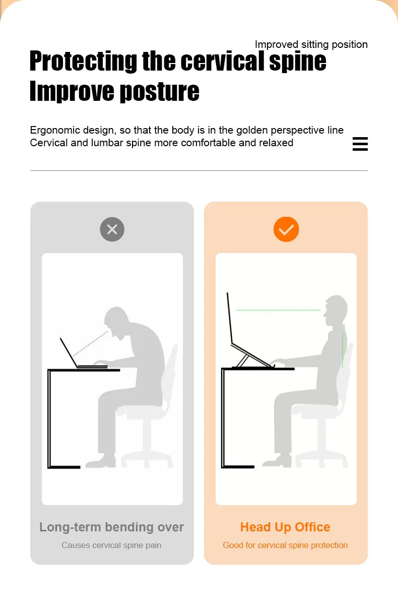 Ont i nacke eller axlar efter långa timmar vid datorn? Med Justerbart hopfällbart laptopställ får du en ergonomisk arbetsposition som minskar belastningen och gör att du kan arbeta längre utan obehag. Perfekt för hemmakontoret, biblioteket eller på resan.