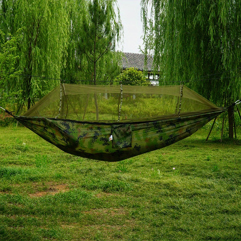 Det slitstarka tyget och den robusta konstruktionen gör att du kan slappna av helt, utan oro för att hängmattan ska ge vika. Myggnätet ger dessutom extra trygghet mot insekter, så att du kan sova ostört även i områden med mycket mygg.