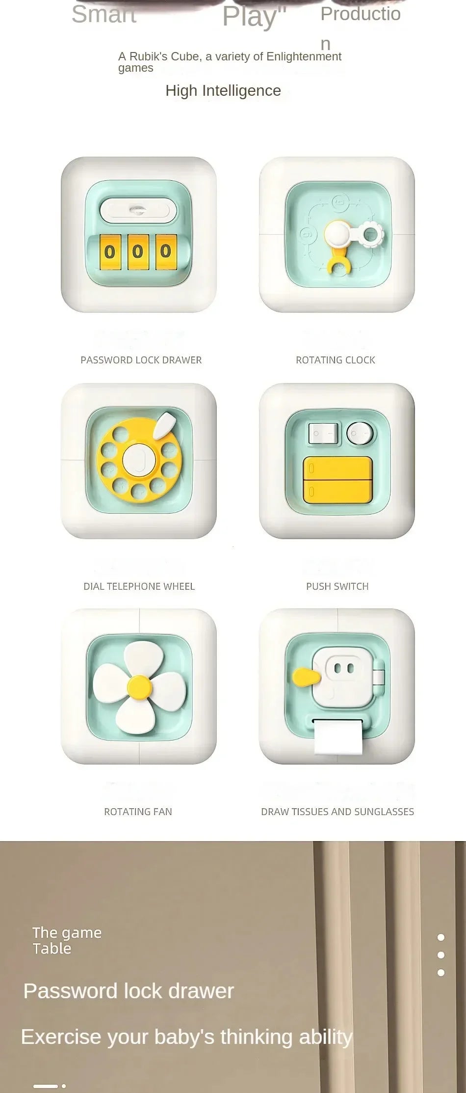Små barn älskar att upptäcka, känna och prova sig fram. Med Montessori Baby Drawer Cube 6-i-1 får ditt barn en rolig och pedagogisk aktivitetsleksak som tränar finmotorik, hand-öga-koordination och problemlösningsförmåga – samtidigt som de har kul.