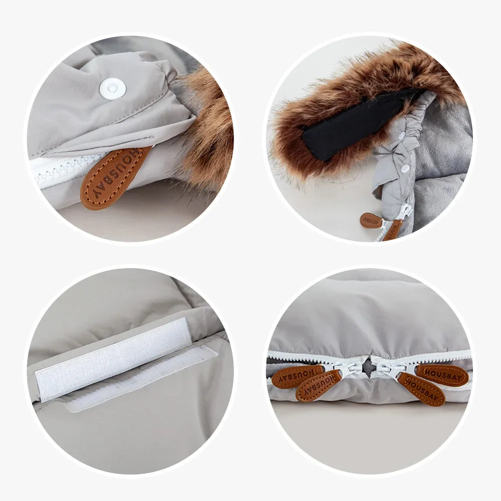 Insidan är fodrad med ett material som känns som en varm kram. Dubbla dragkedjor gör det enkelt att lyfta i och ur barnet, eller öppna upp för att byta blöja snabbt.