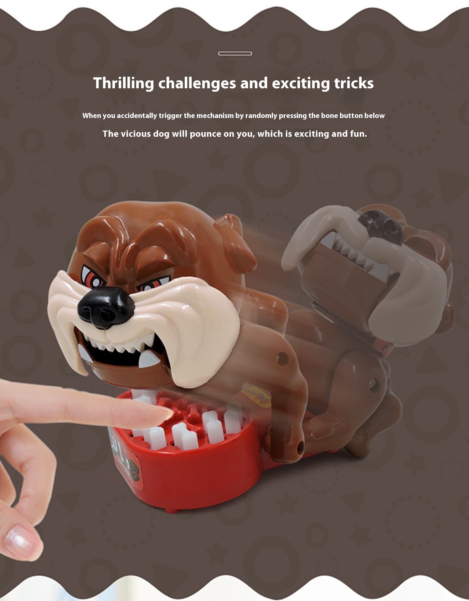 Har du nerver av stål? Med TandHunden gäller det att vara både modig och försiktig. Dra en tand ur hundens mun – men akta dig, för drar du fel tand kan den hugga igen! Perfekt för att få hela familjen att skratta och skrika av spänning.