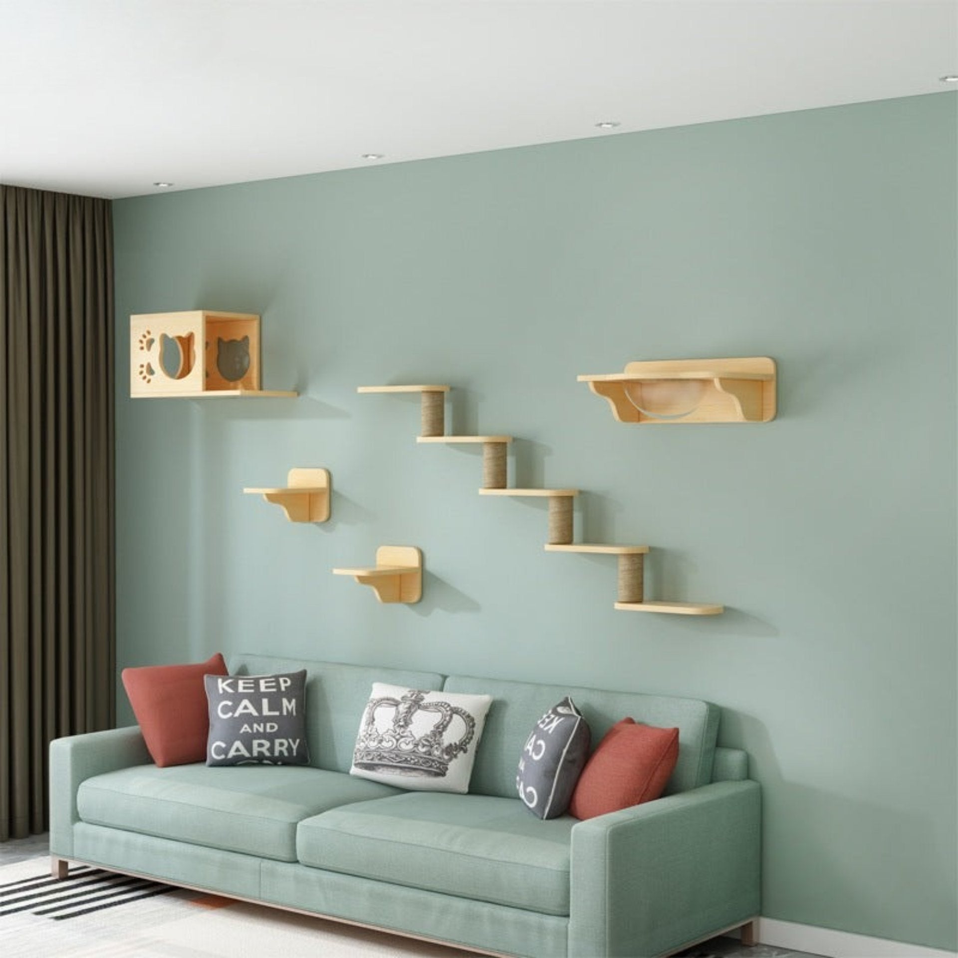 Tillverkad i slitstarka material som tål intensiv lek. Väggmonteringen ger extra stabilitet och trygghet, så din katt kan klättra och hoppa utan risk.