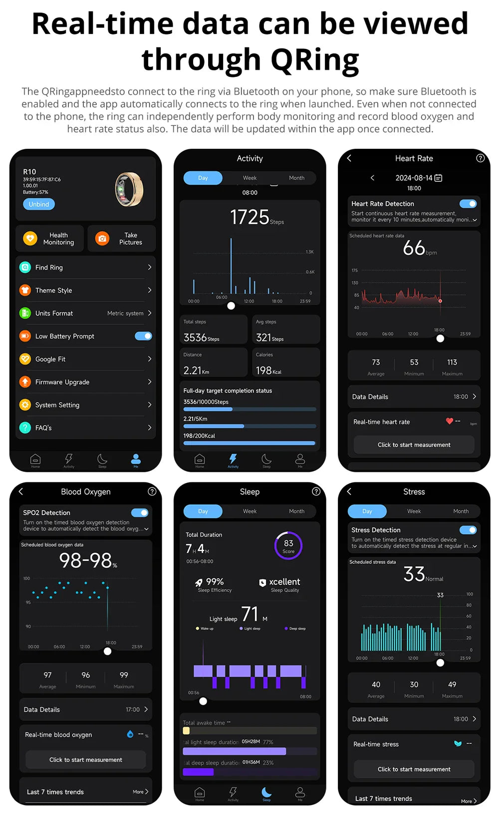 Med lång batteritid och medföljande laddfodral behöver du aldrig oroa dig för att ringen ska dö mitt i dagen. Den är byggd för att följa med dig i vardagen – från morgonträningen till nattens sömn.