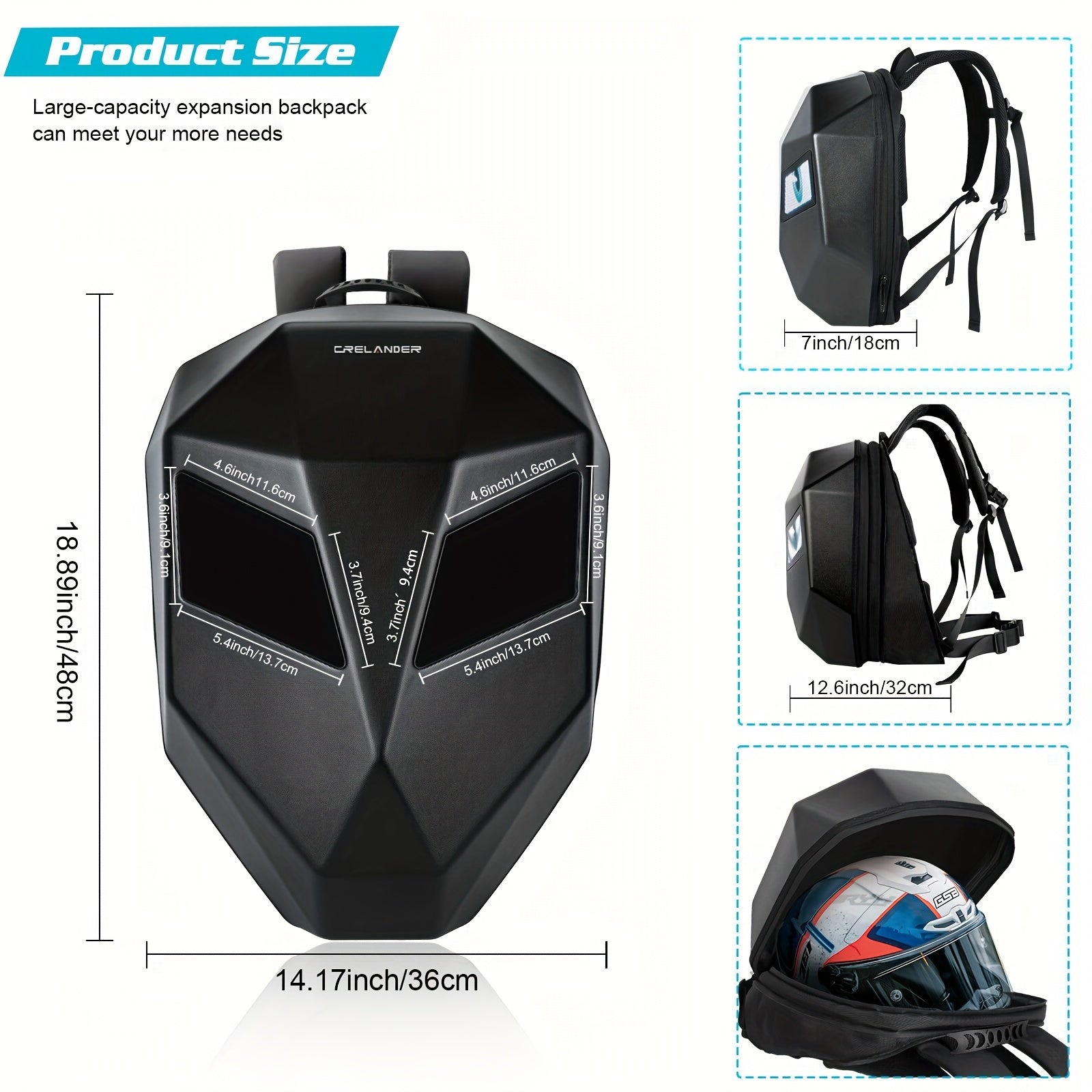 Den hårda ABS-skaldesignen skyddar dina saker, medan den expanderbara förvaringsytan gör det möjligt att bära allt från laptop till motorcykelhjälm. Perfekt för pendling, event, resor eller som en cool accessoar på stan.