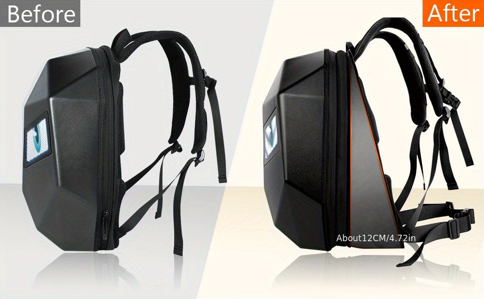 Med LED Ryggsäck med Programmerbar RGB-Belysning får du inte bara en praktisk och slitstark väska – du får en personlig statement-piece. Ändra text, bilder och till och med GIF-animationer direkt via en app i mobilen och gör väskan unik för varje tillfälle.