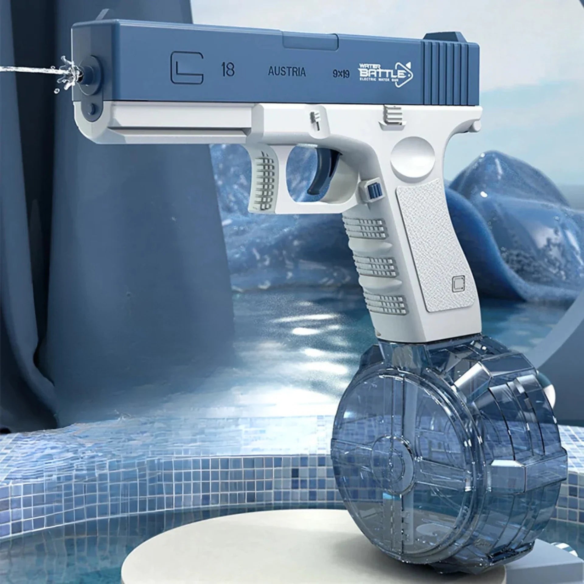 Glöm svaga vattenpistoler som tappar tryck efter några skott. Med VattenKraft får du elektrisk kraft i varje avtryck – en stråle som känns på riktigt. Oavsett om du är på stranden, i poolen eller i trädgården förvandlas varje stund till ett episkt vattenkrig.