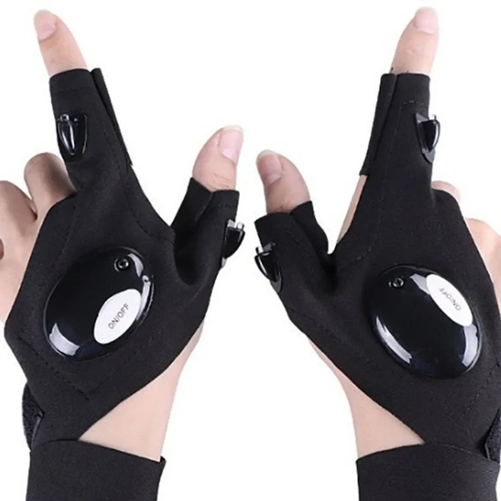 LED-handskar utan fingertoppar – ficklampor på fingrar för fiske & cykel