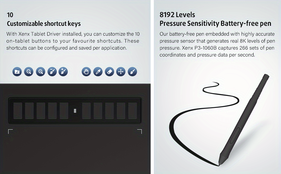 Tryckkänslig penna – justera tjocklek och intensitet med pennans tryck.