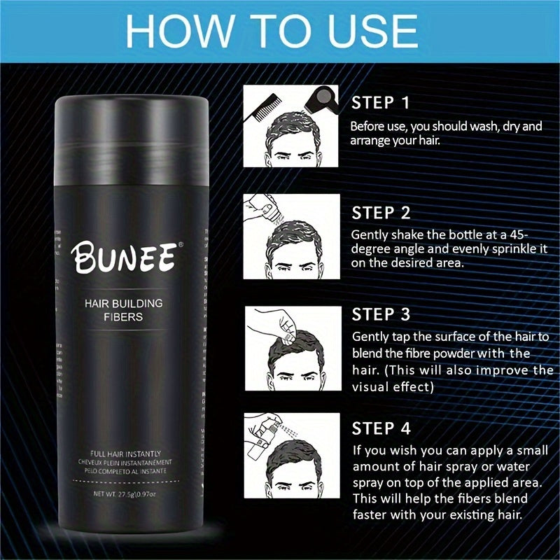 Mikrofibrer i puderform – Fäster på hårstrån och hårbotten för att skapa illusionen av tjockare hår.
