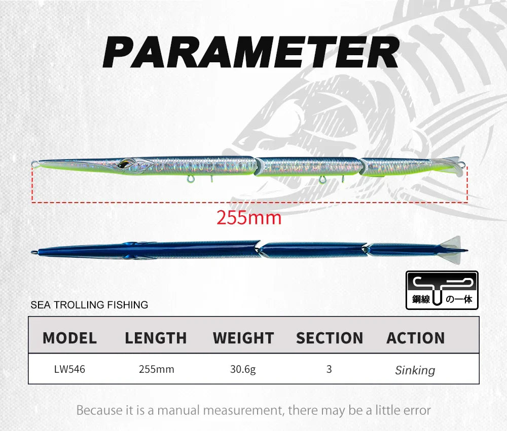 25,5 cm lång och 30,6 g tung – perfekt för kustfiske och havsdrag