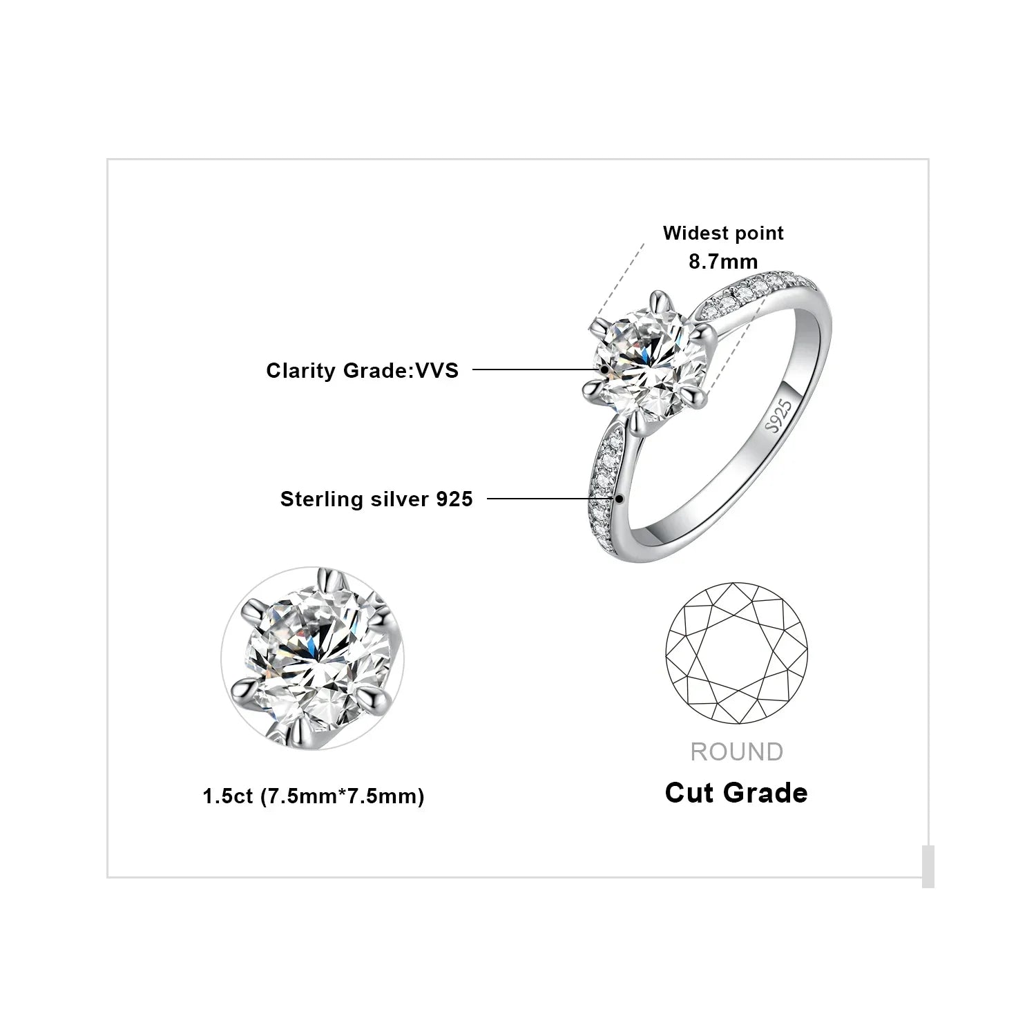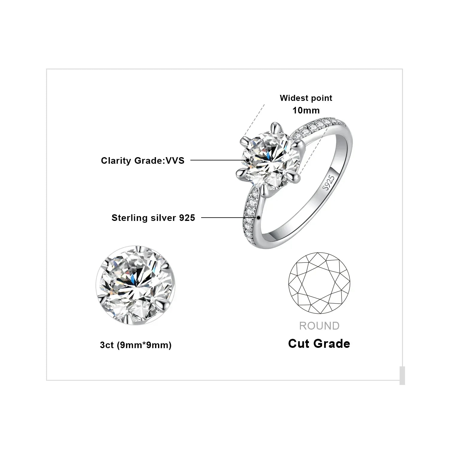 Klassisk rund ring med sten – 0,5–3 ct