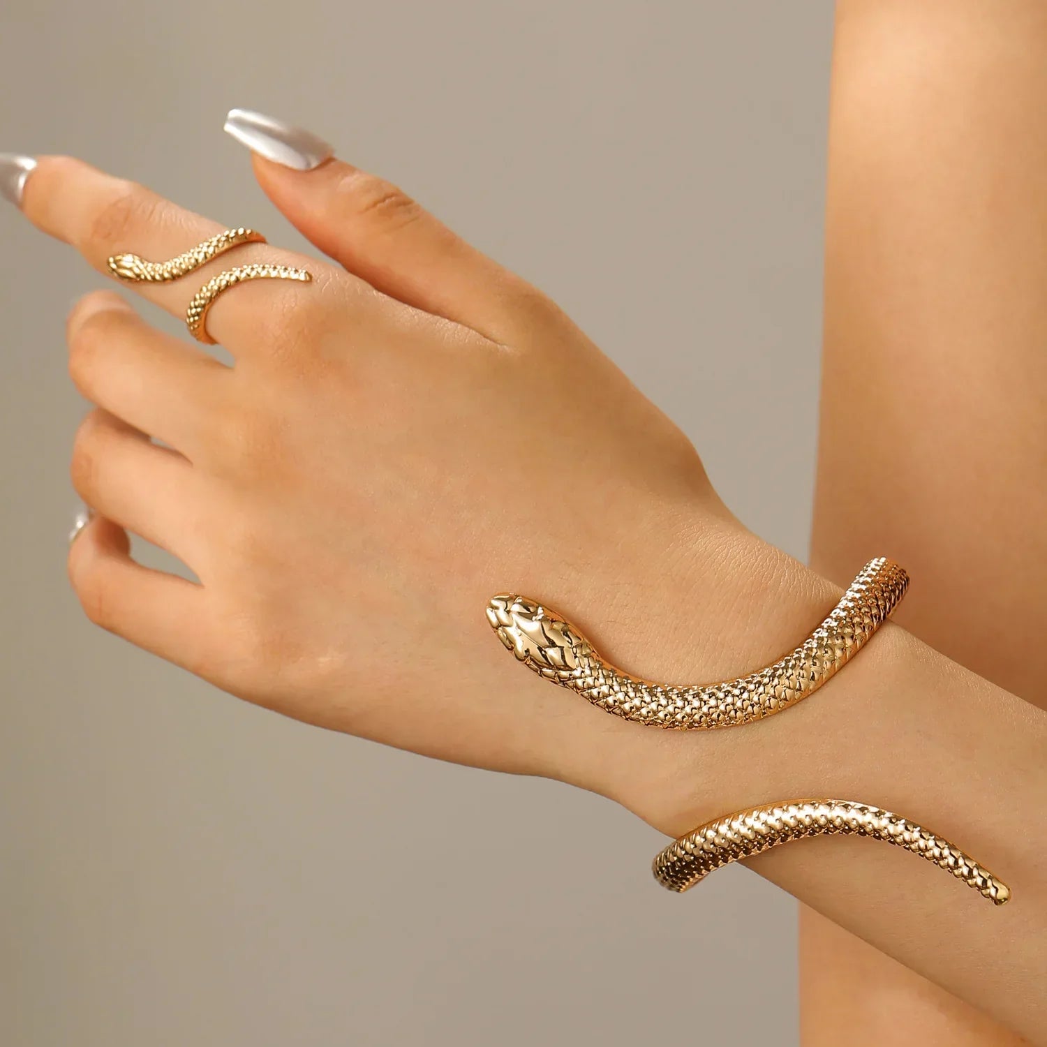 Smyckeset Selma (ormring & cuff-armband i silverfärg – punkstil)