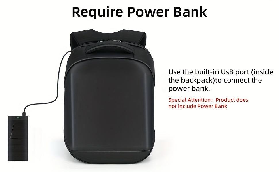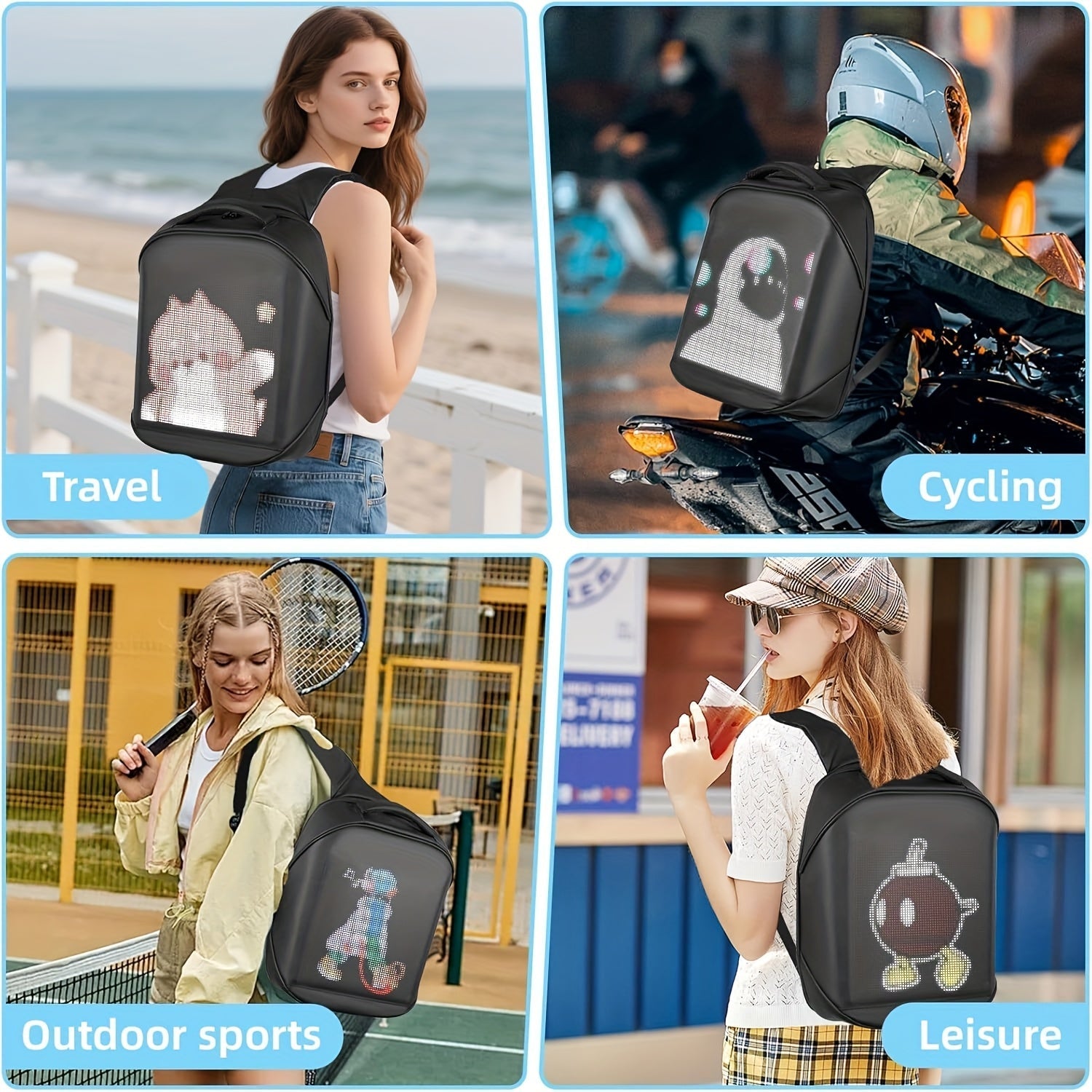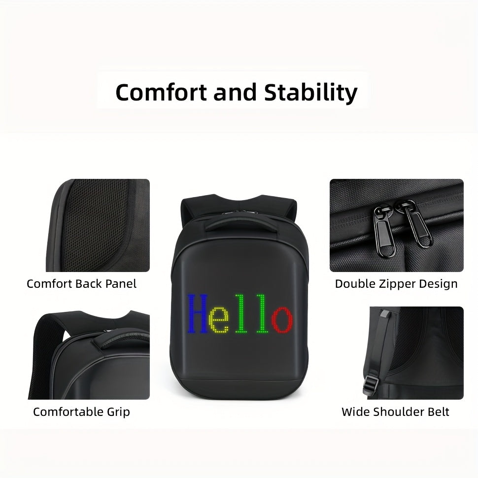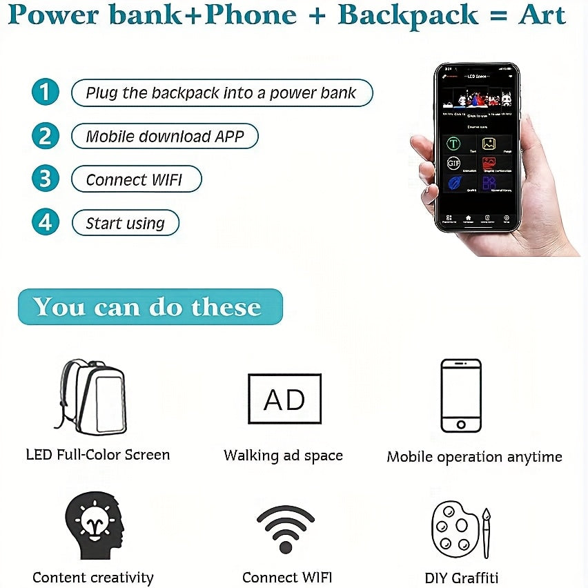 Trött på vanliga, tråkiga väskor? Med vår LED-Ryggsäck med Fullfärgsdisplay bär du inte bara dina saker – du bär din personlighet. Visa bilder, animationer, text eller egna ritningar direkt på ryggsäcken och bli centrum för uppmärksamheten vart du än går.