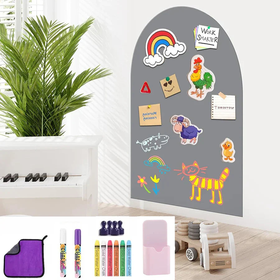 Vår Multifunktionella Väggdekal – självhäftande, magnetisk och fungerar både som griffeltavla och whiteboard i ett. Den är den perfekta ytan för barn att rita och drömma på, och förvandlar vilket rum som helst till ett kreativt sagoland!