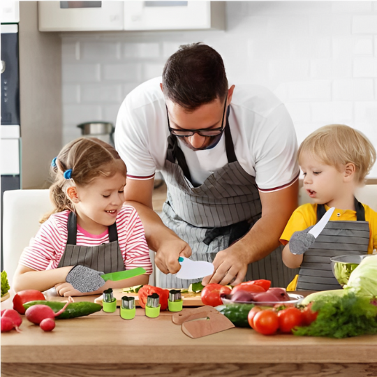 Vårt köksset är designat för trygghet och enkel användning, låt barnens fantasi flöda utan att kompromissa med säkerheten.
