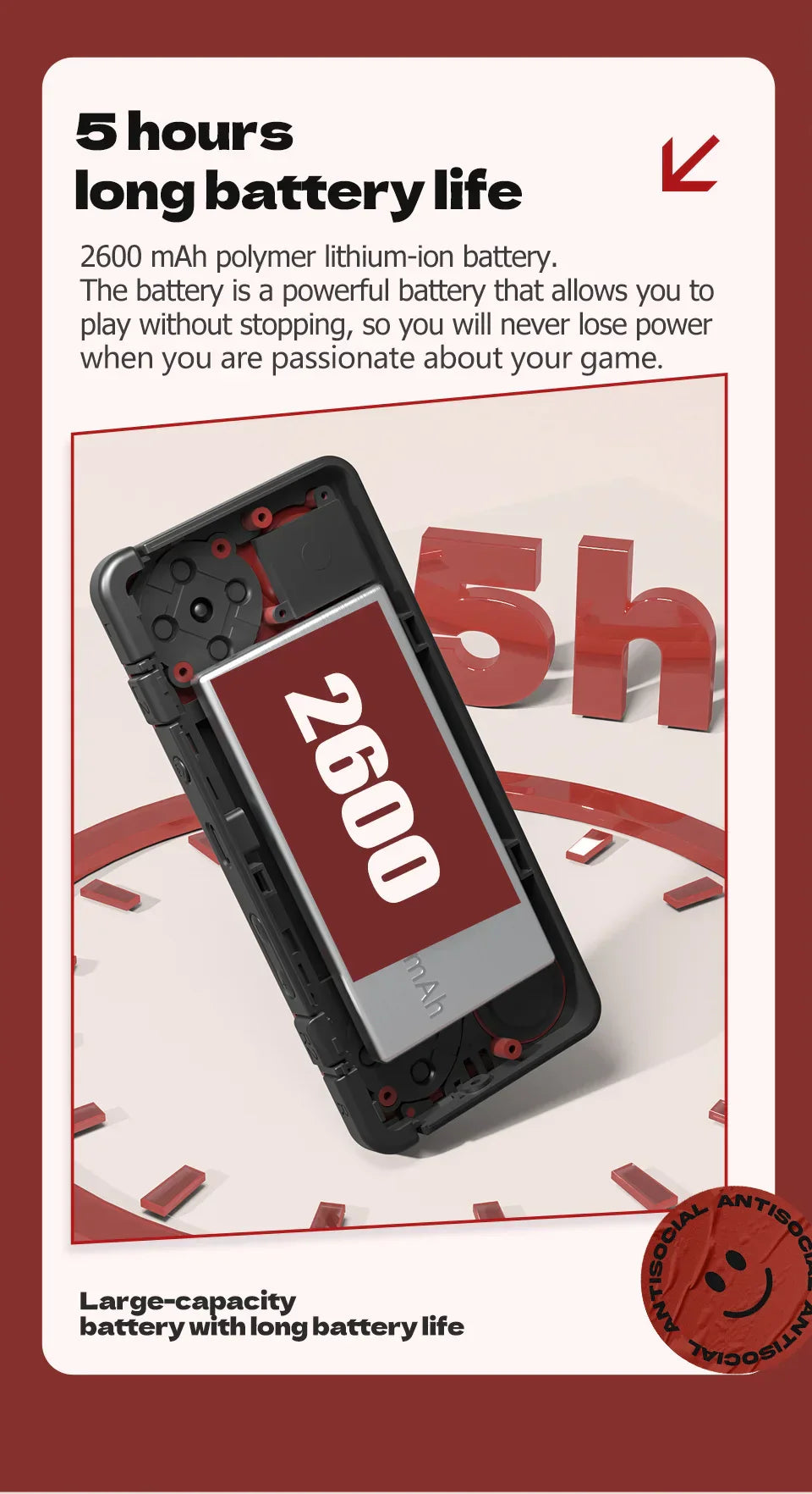 ✔ 2600mAh batteri – upp till 5 timmars speltid per laddning