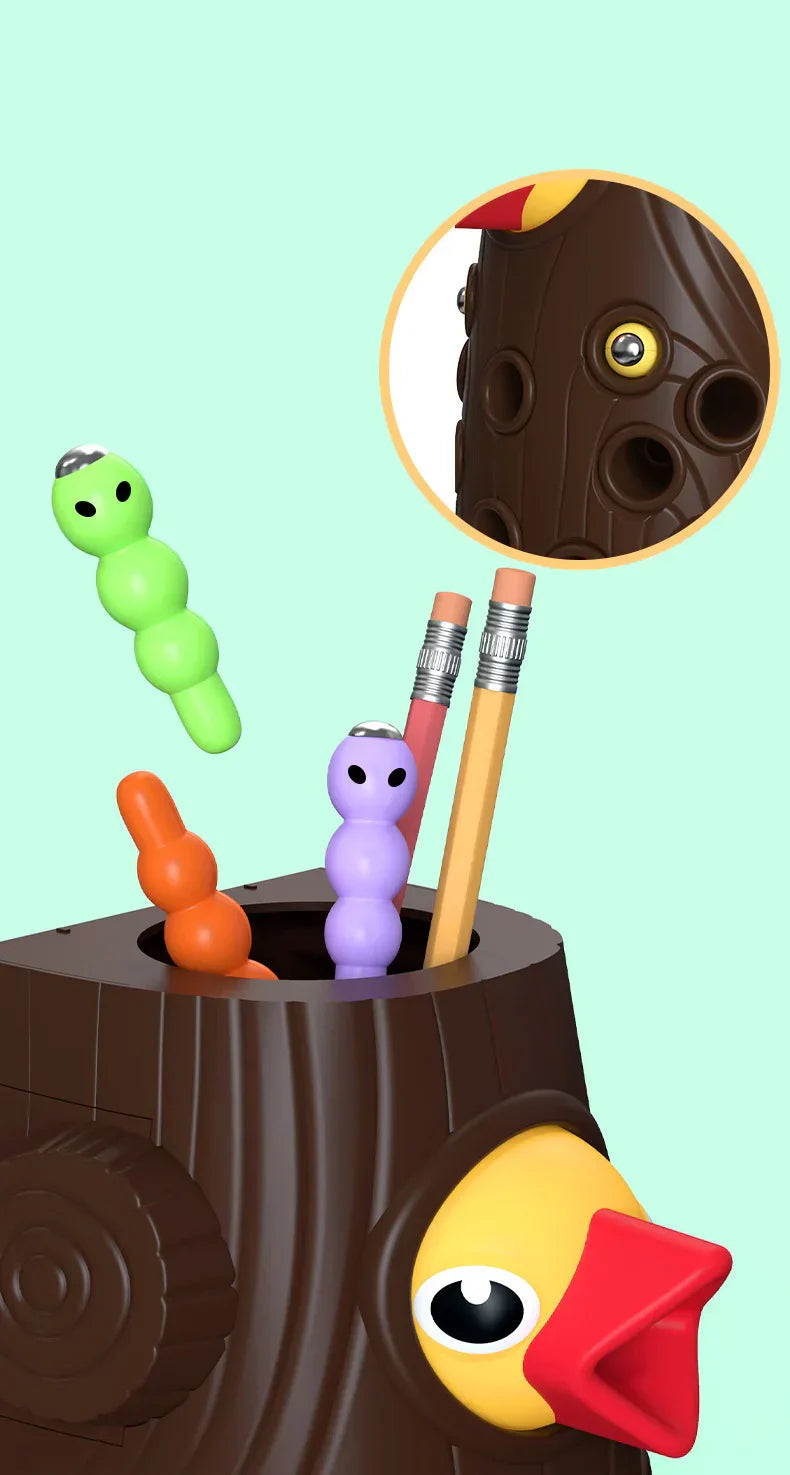 Föreställ dig glädjen i ditt barns ögon när hackspetten lyckas fånga en mask, och skratten när ni turas om att mata den. Denna enkla men geniala leksak blir snabbt en favorit i lekrummet – perfekt både för ensamlek och gemensam familjetid.