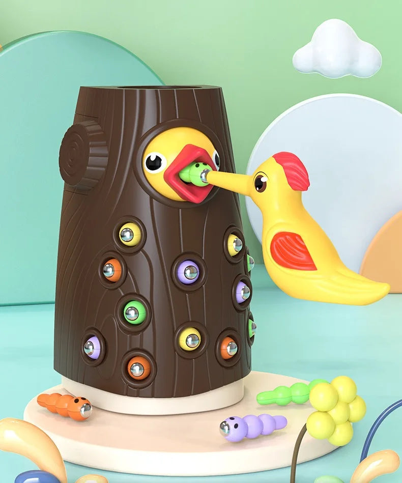 Barn älskar att härma djur och utforska världen genom lek. Med Montessori Hackspettsleken kan ditt barn bli en liten fågel som fångar maskar med hjälp av en magnetisk hackspett – en lek som är både rolig och utvecklande.