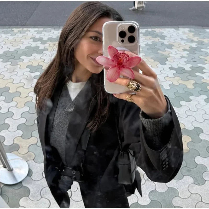 Med Magnetiskt mobilgrepp – blomma får din telefon både stil och funktion. Den vackra 3D-blomdesignen gör din mobil unik, medan det praktiska greppet ger dig extra kontroll och komfort i vardagen.