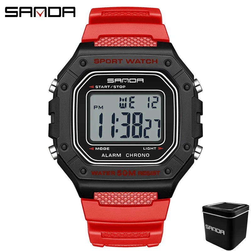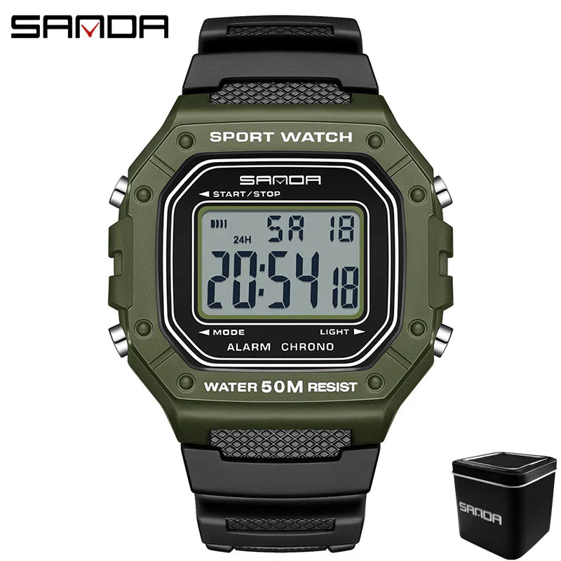 LED sportklocka herr – rektangulär digital display